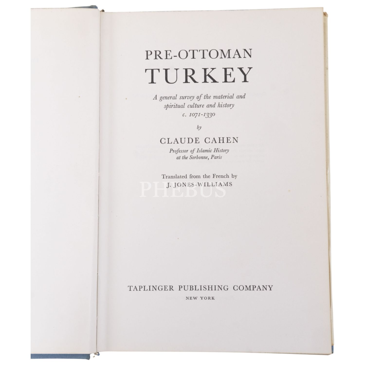PRE-OTTOMAN TURKEY (A general survey of the material and spiritual culture and history c. 1071-1330), Claude Cahen, (translated from the French by J. Jones-Williams), 1968, Taplinger Publishing Company, New York, 458 sayfa, 16x24 cm...