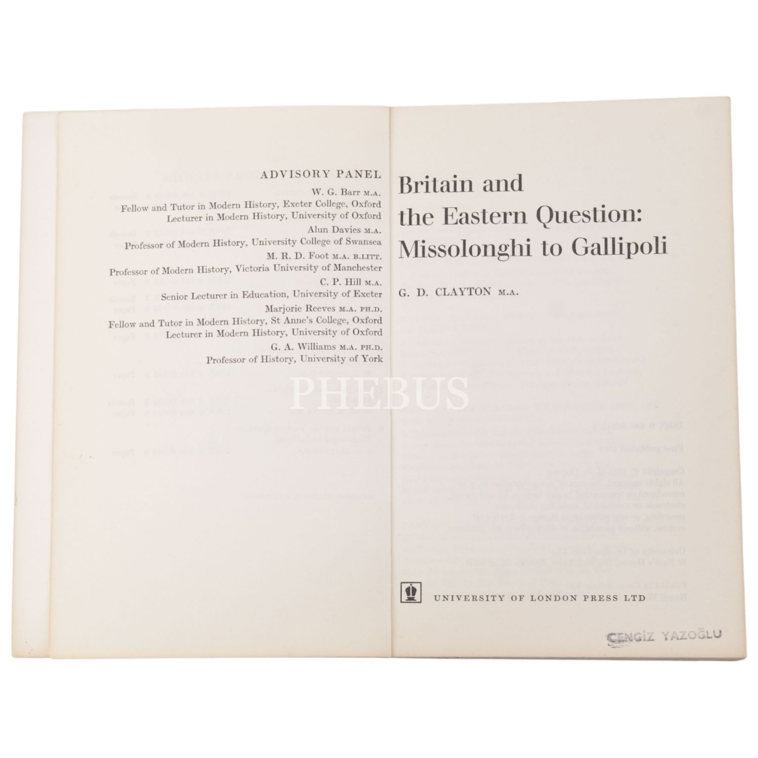 BRITAIN AND THE EASTERN QUESTION: MISSOLONGHI TO GALLIPOLI, G. D. Clayton, 1971, University of London Press Ltd, 256 sayfa, 14x21 cm...