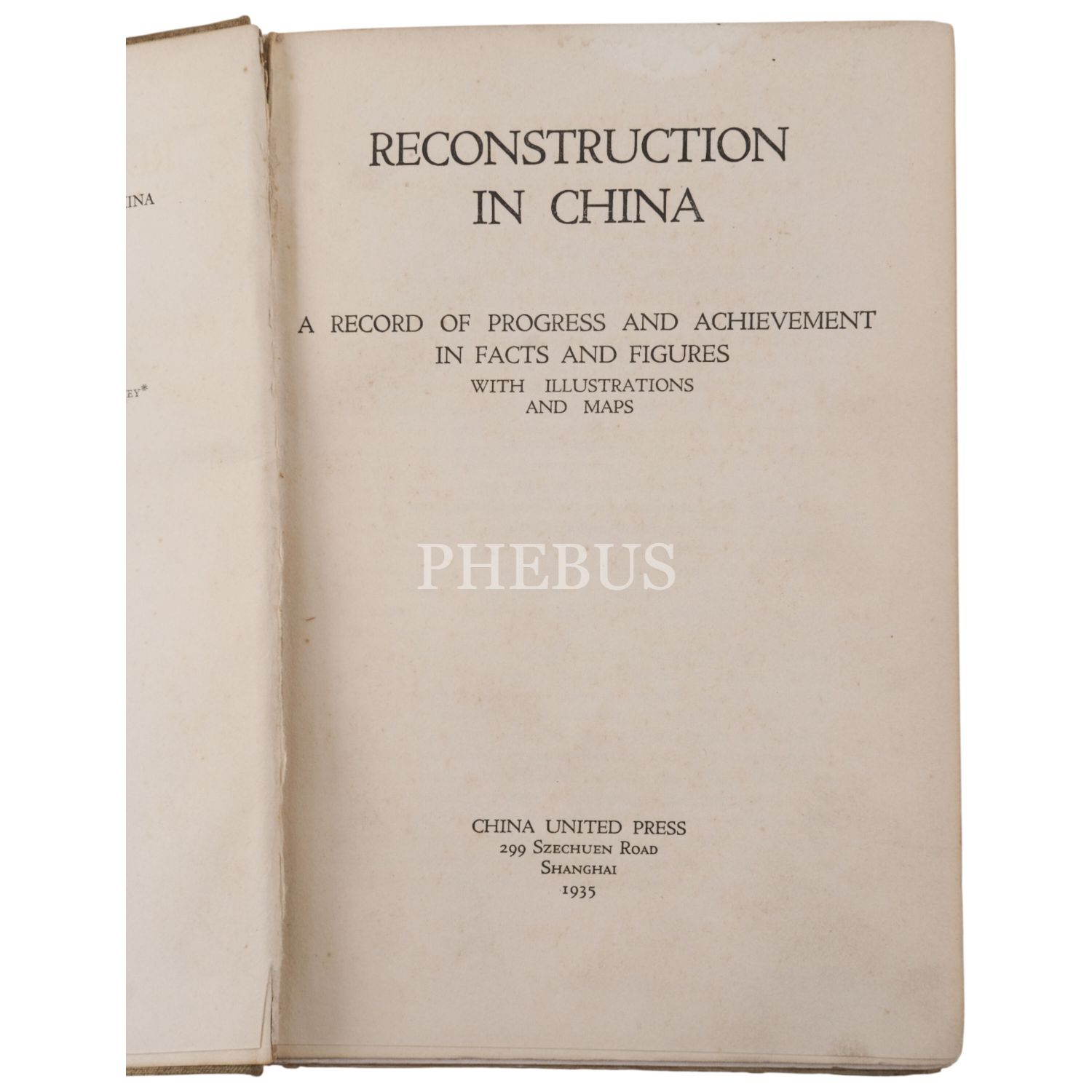 RECONSTRUCTION IN CHINA: A RECORD OF PROGRESS AND ACHIEVEMENT IN FACTS AND FIGURES (With Illustrations and Maps), 1935, China United Press, Shanghai, 401 sayfa, 18x25 cm...