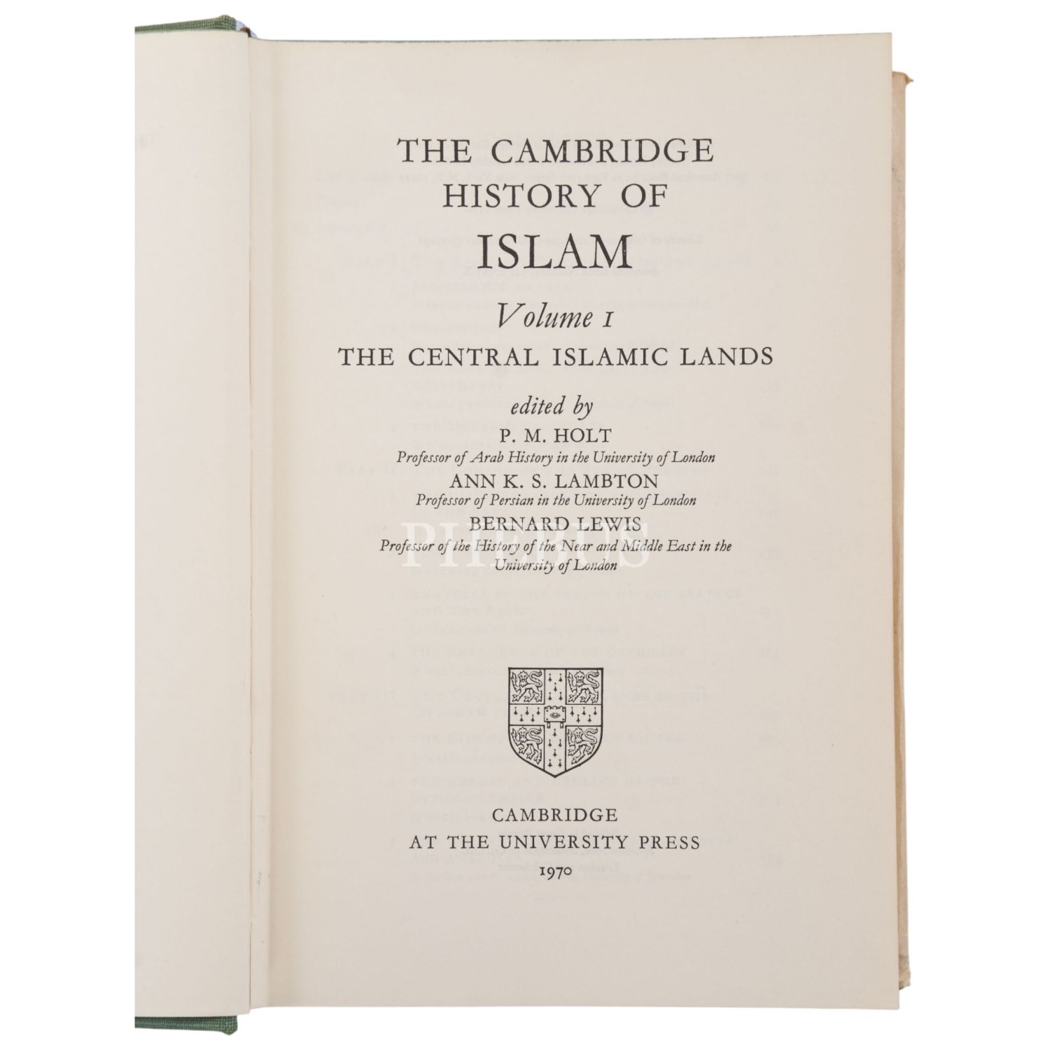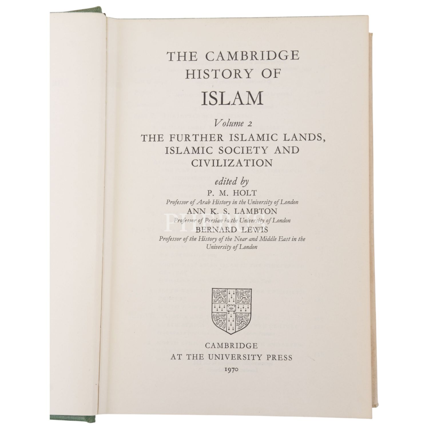 THE CAMBRIDGE HISTORY OF ISLAM (2 cilt takım) - Volume I: The Central Islamic Lands / Volume II: The Further Islamic Lands, Islamic Society and Civilization, (edited by P. M. Holt, Ann K. S. Lambton & Bernard Lewis), 1970, At The University Press, Cambridge, 815+966 sayfa, 16x24 cm...