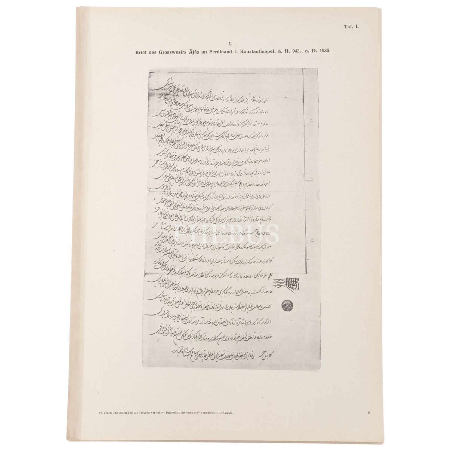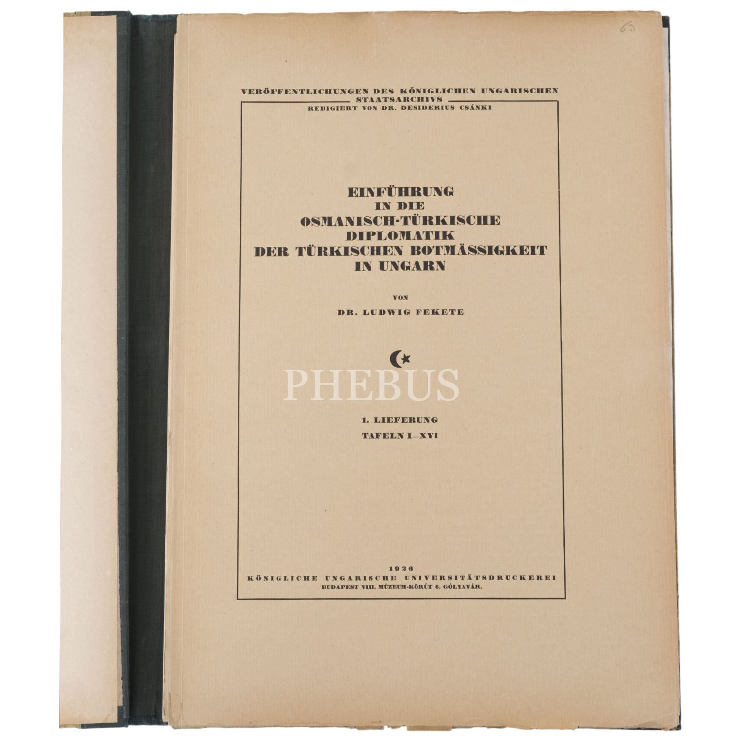 EINFÜHRUNG IN DIE OSMANISCH-TÜRKISCHE DIPLOMATIK DER TÜRKISCHEN BOTMASSIGKEIT IN UNGARN, Ludwig Fekete, 1926, Budapeşte, 68+35 sayfa, 31x42 cm...