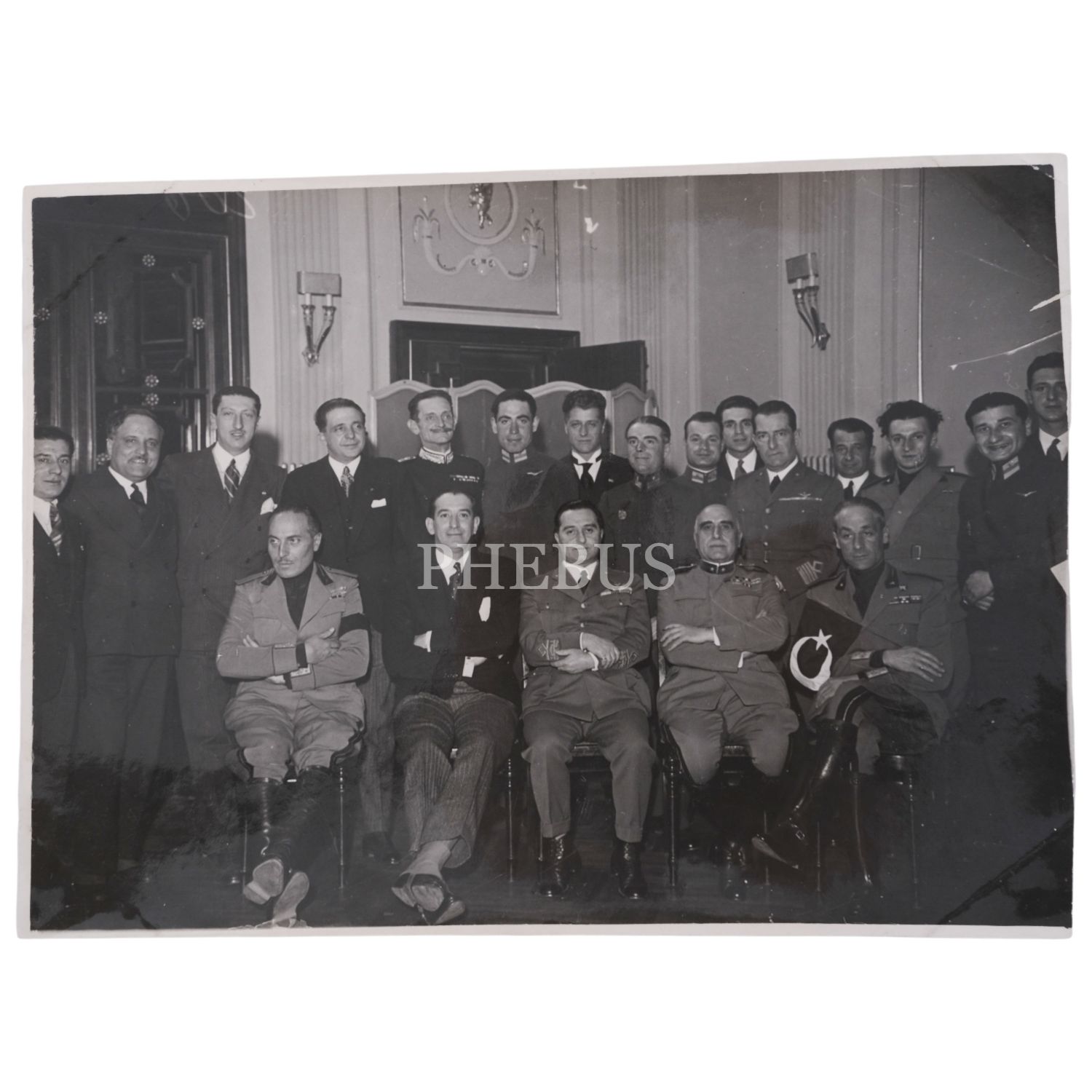 Türk ve İtalyan subayların Milano´daki baloda çekilmiş toplu hatıra fotoğrafı, 24x18 cm...