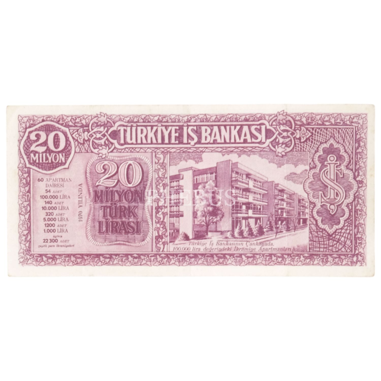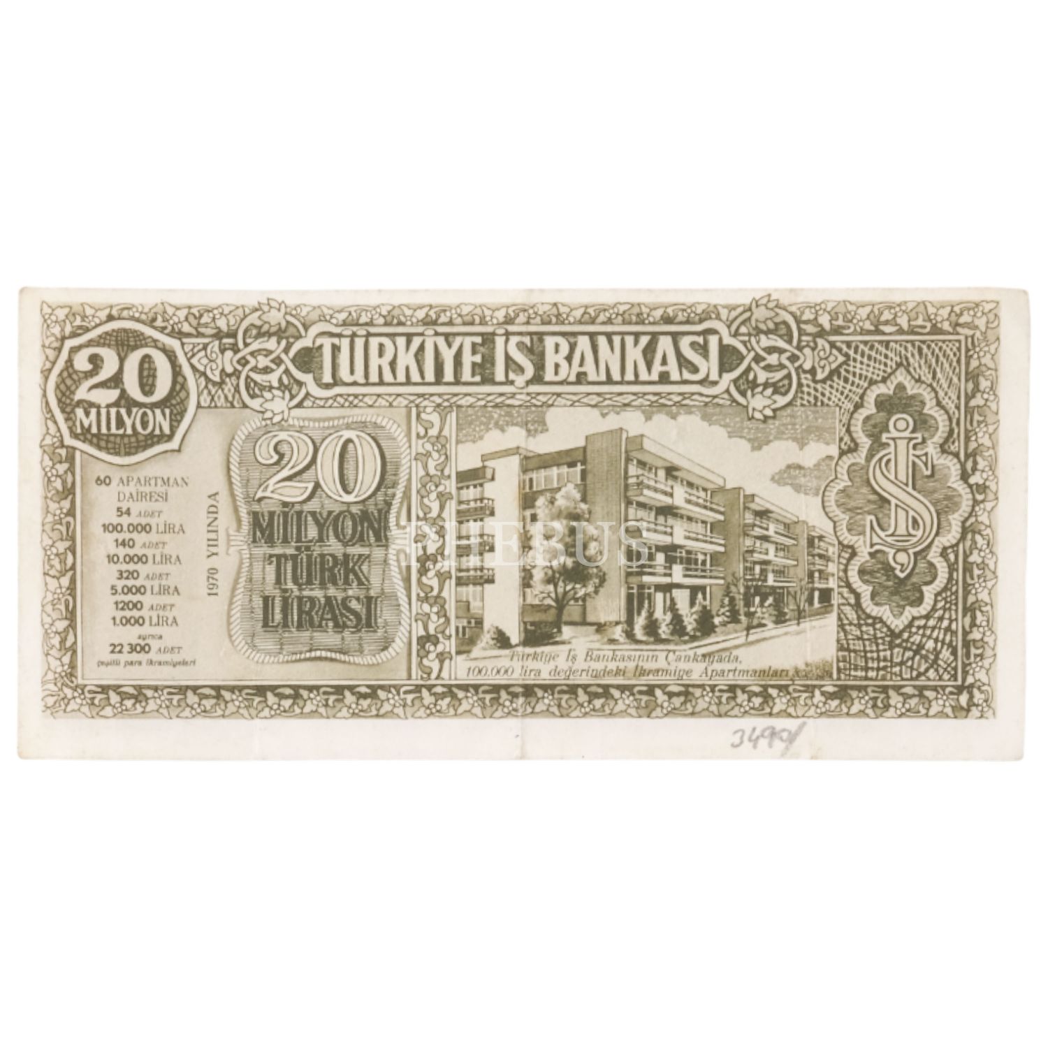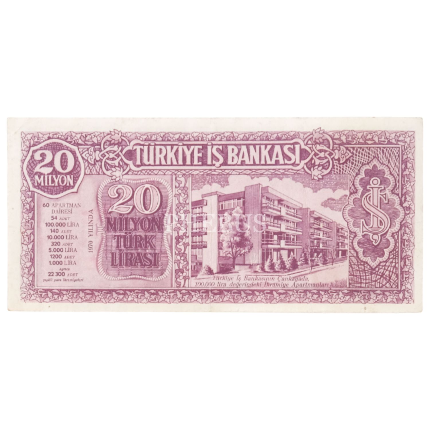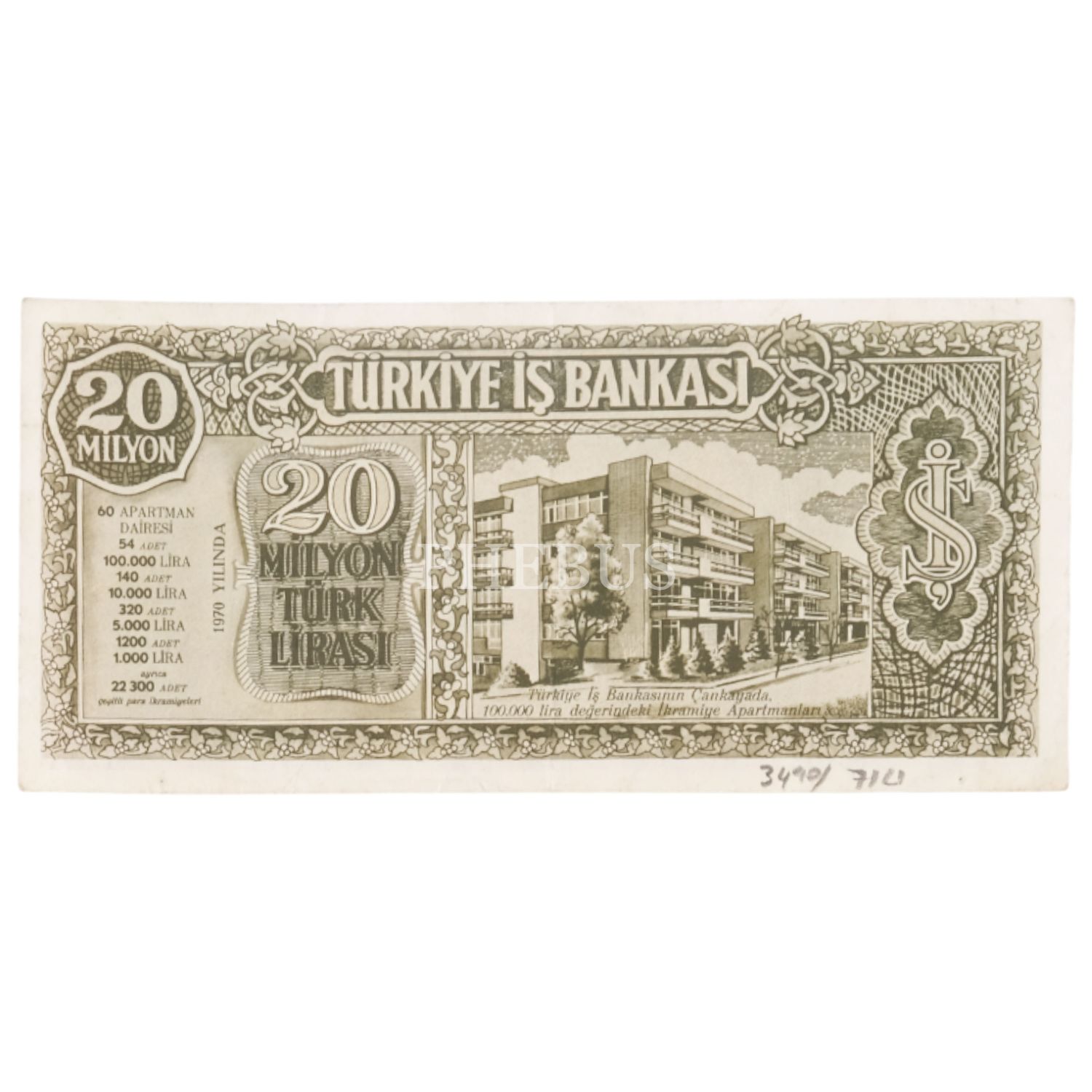 Türkiye İş Bankası 20 Milyon Türk Lirası, 1970, promosyon para (ikramiye planı), 17x8 cm...