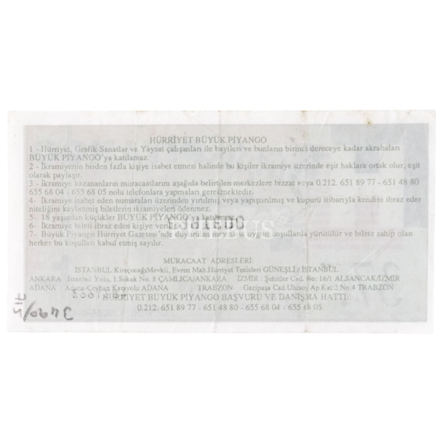 Hürriyet Büyük Piyango bileti, 13x7 cm...