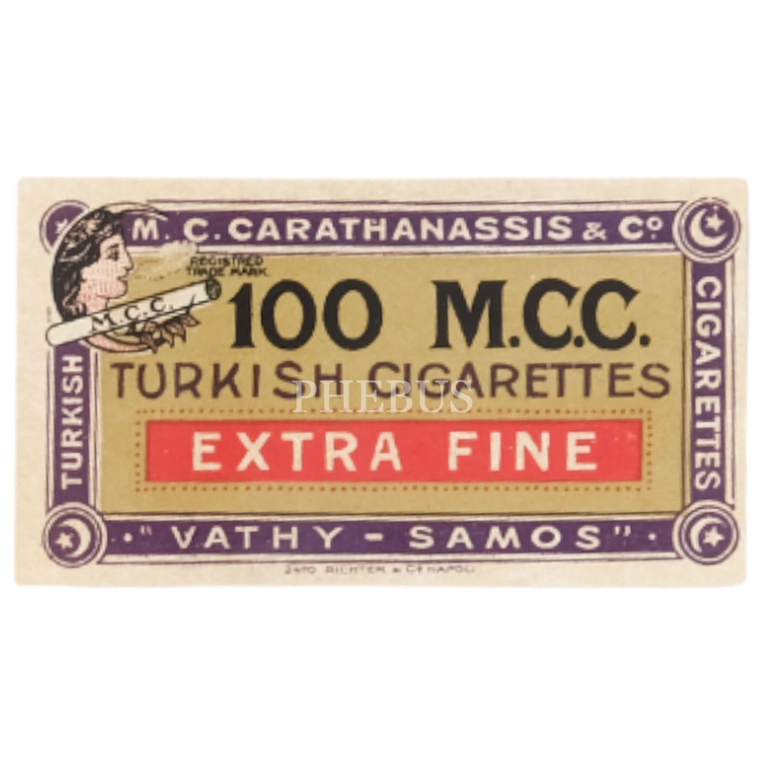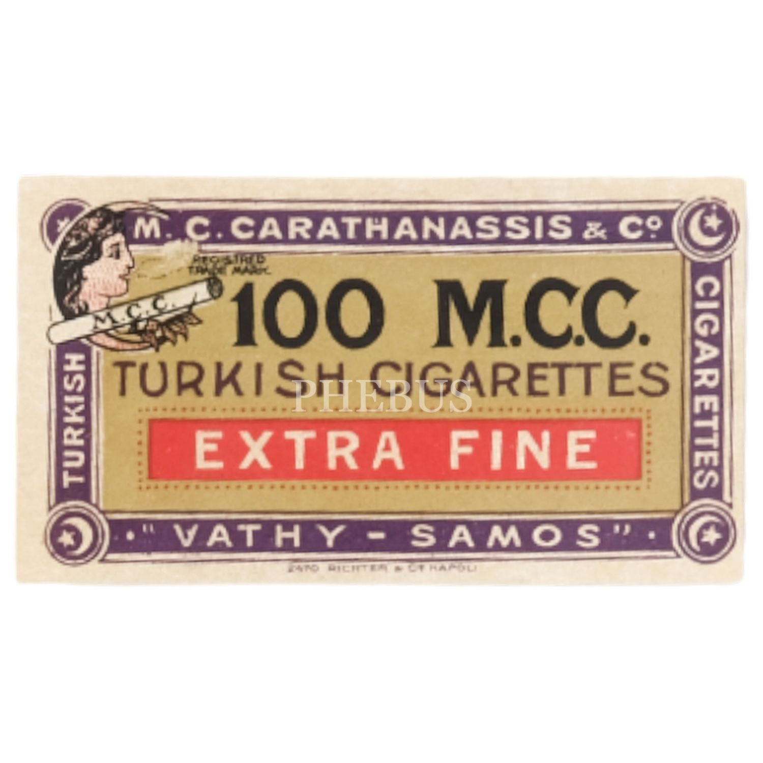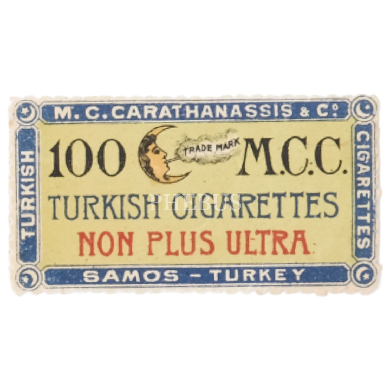 "100 M.C.Carathanassis Turkish Cigarettes" marka sigara kağıdı etiketi, 2 adet, 6x4 cm...