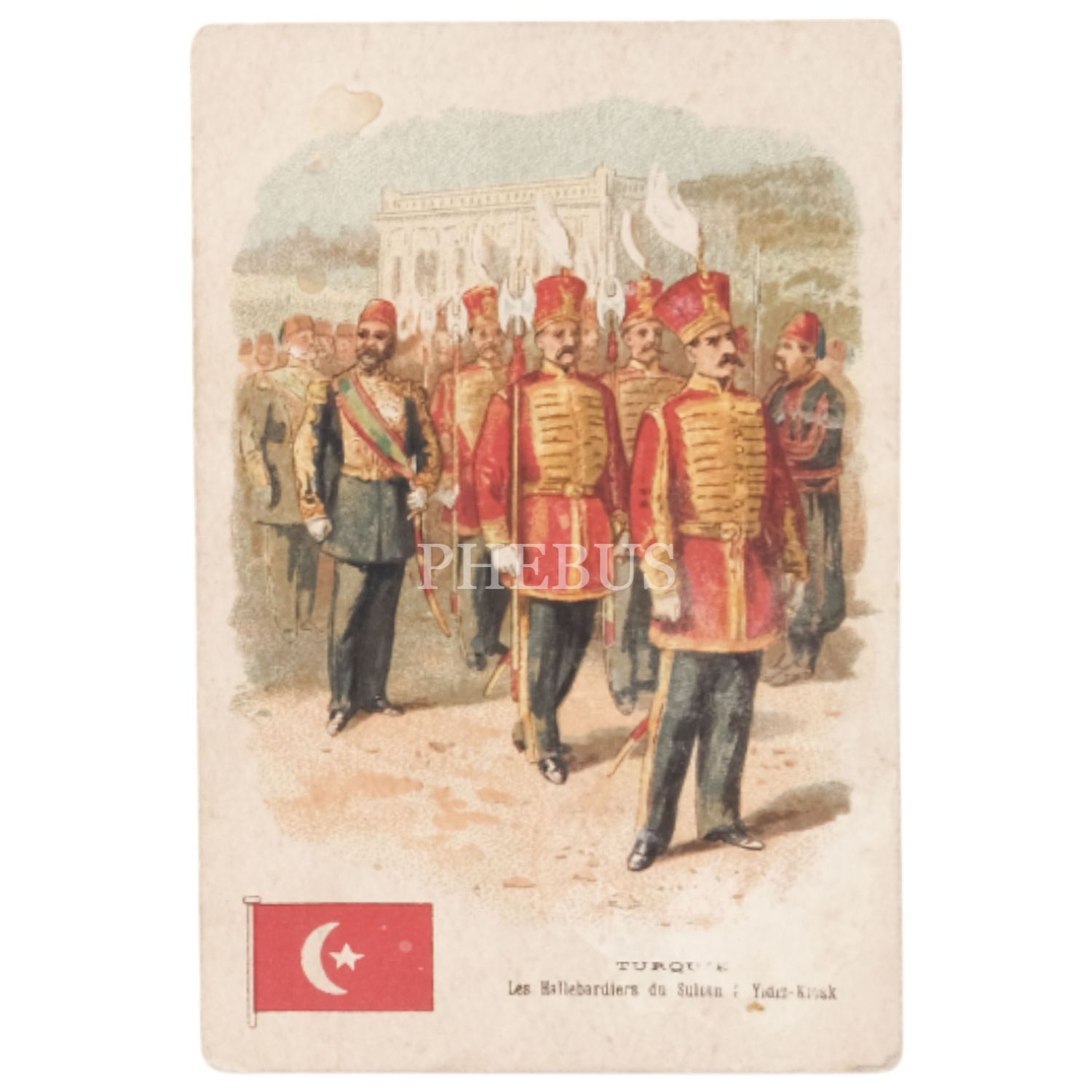 Yıldız Sarayı´nda Sultan II. Abdülhamid ve muhafızları, ed. Maison C. Beriot, 7x11 cm...