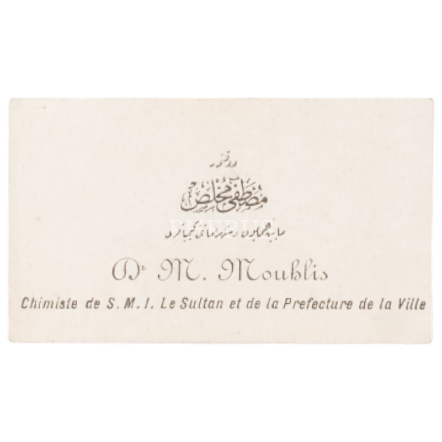 Mabeyn-i Hümayun ve Şehremaneti Kimyageri Doktor Mustafa Muhlis´in Osmanlıca ve Fransızca kartviziti, 9x5 cm...