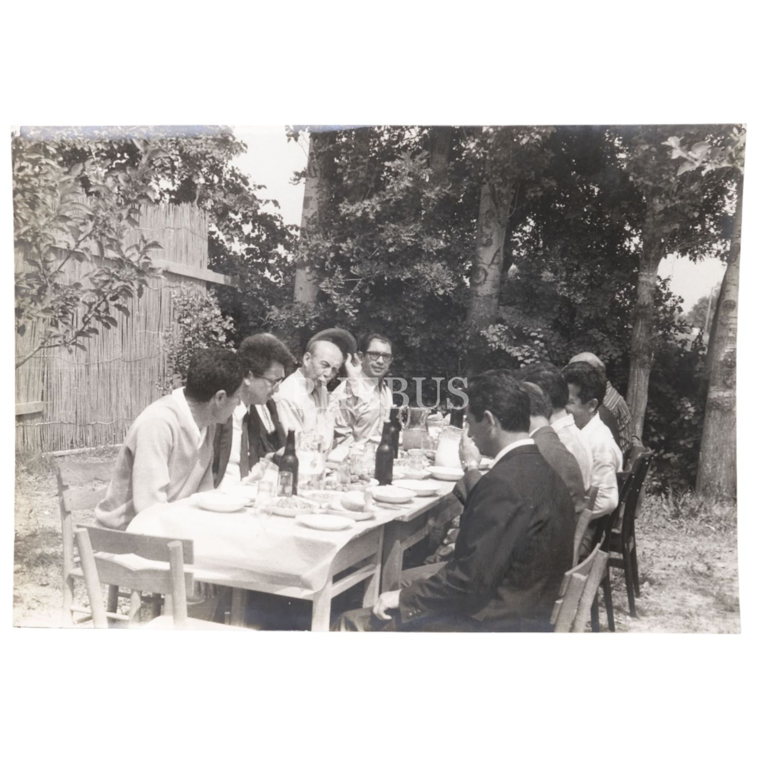 Aralarında Vehbi Koç´un bulunduğu bir topluluğun bahçe sofrasında çekilmiş enstantane fotoğrafı, 24x17 cm...