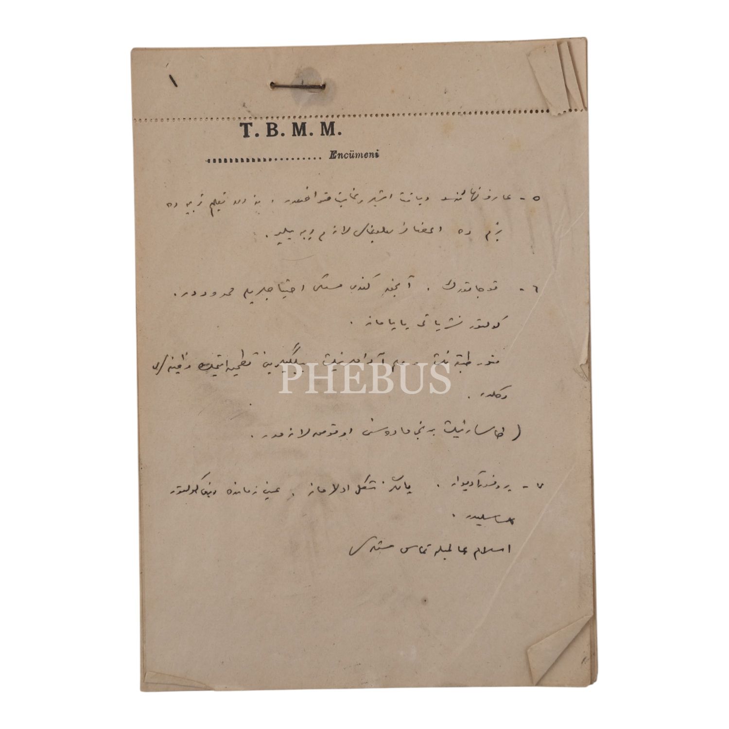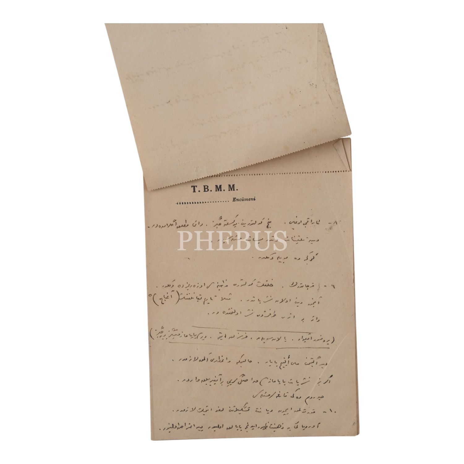 "T.B.M.M. .... Encümeni" antetli deftere kaleme alınmış, meclisin bir celsesinin zaptı, 15x20 cm...