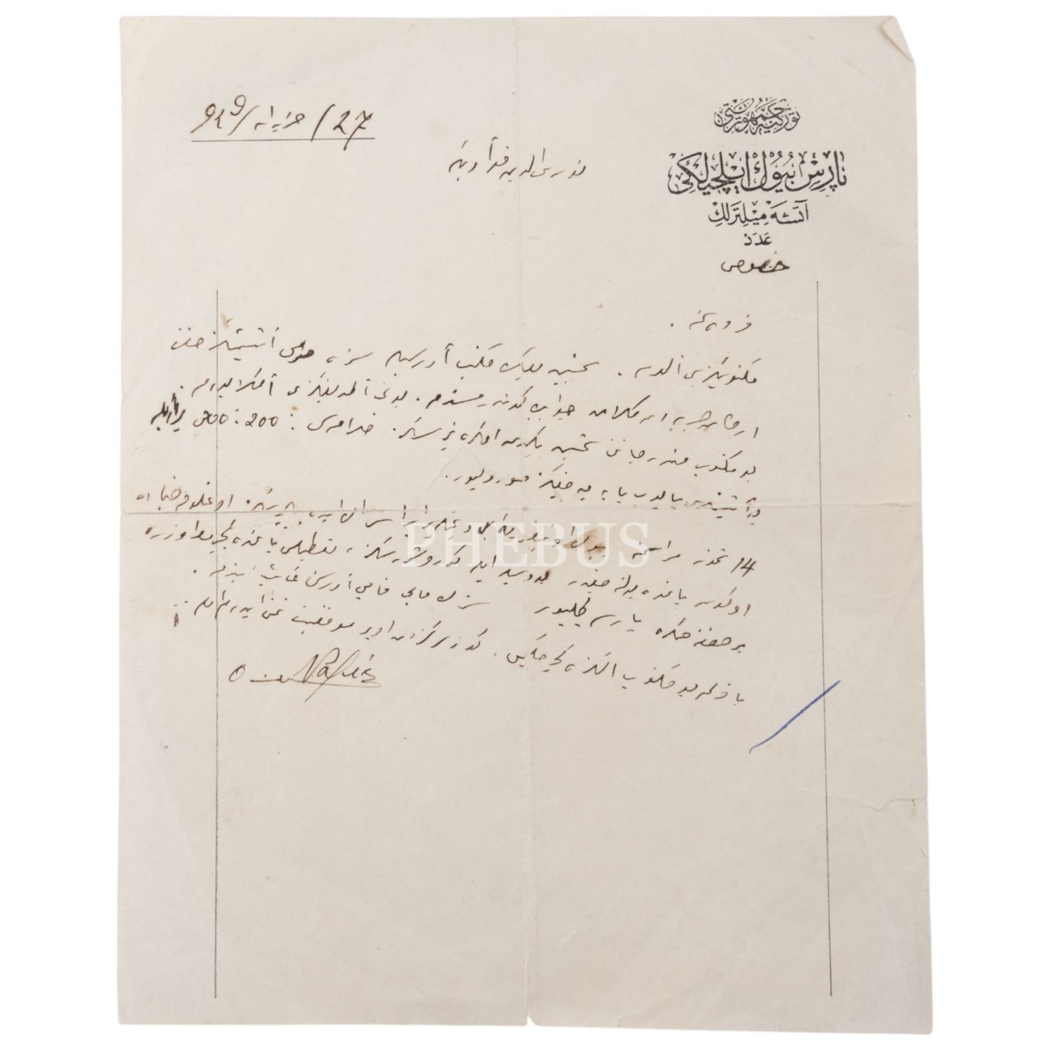 Türkiye Cumhuriyeti Paris Büyükelçiliği Ateşemiliterlik antetli kağıda kaleme alınmış, "O. Nafiz" imzalı, 1929 tarihli mektup, 15x19 cm...