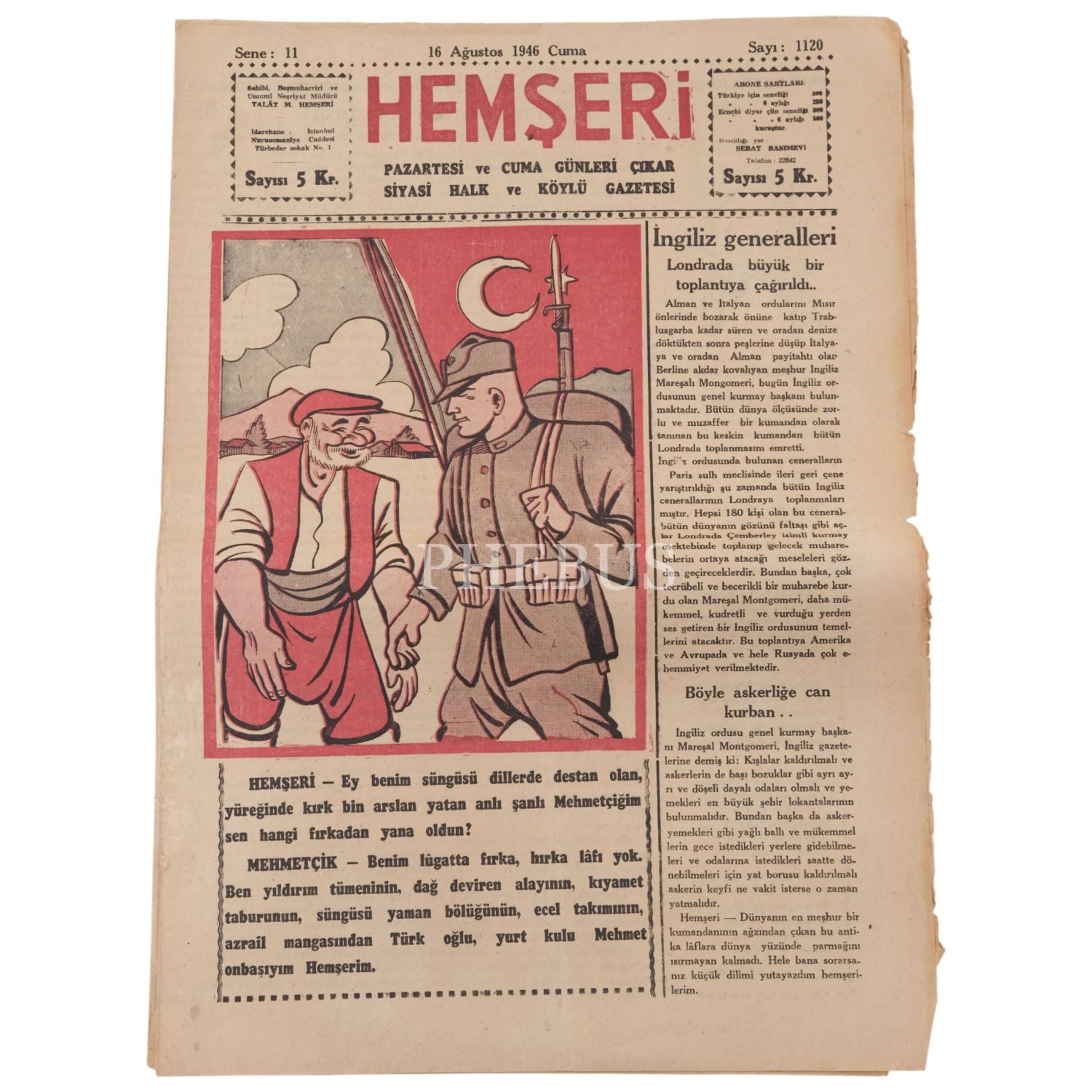 "Siyasî Halk ve Köylü Gazetesi" HEMŞERİ´nin, 1945-1946 yıllarında yayımlanan 40 sayısı, 30x42 cm...