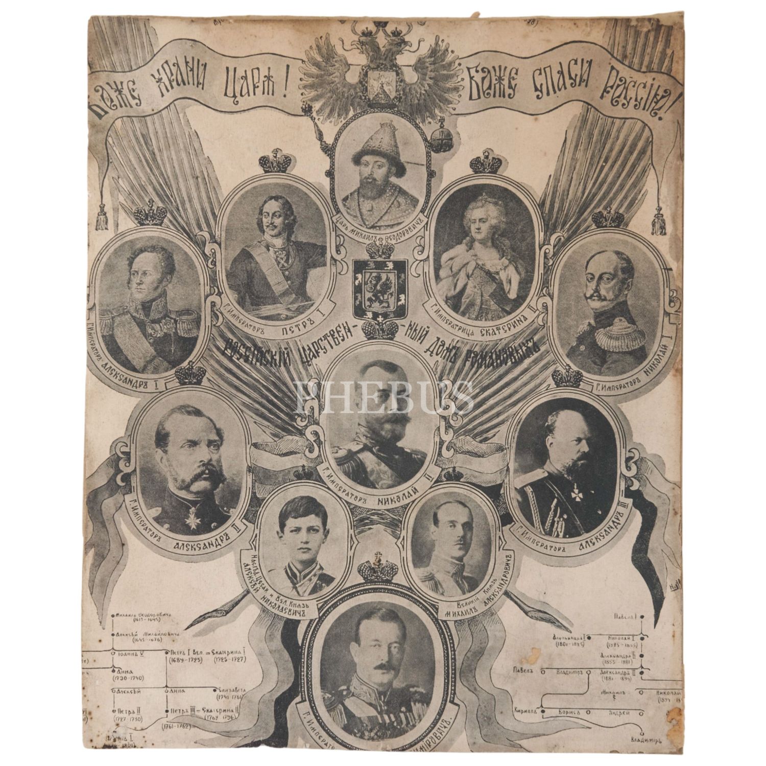 Rusya´nın hükümdar kraliyet ailesi Romanov Hanedanı´nın fotoğraflı soyağacı, 22x27 cm...