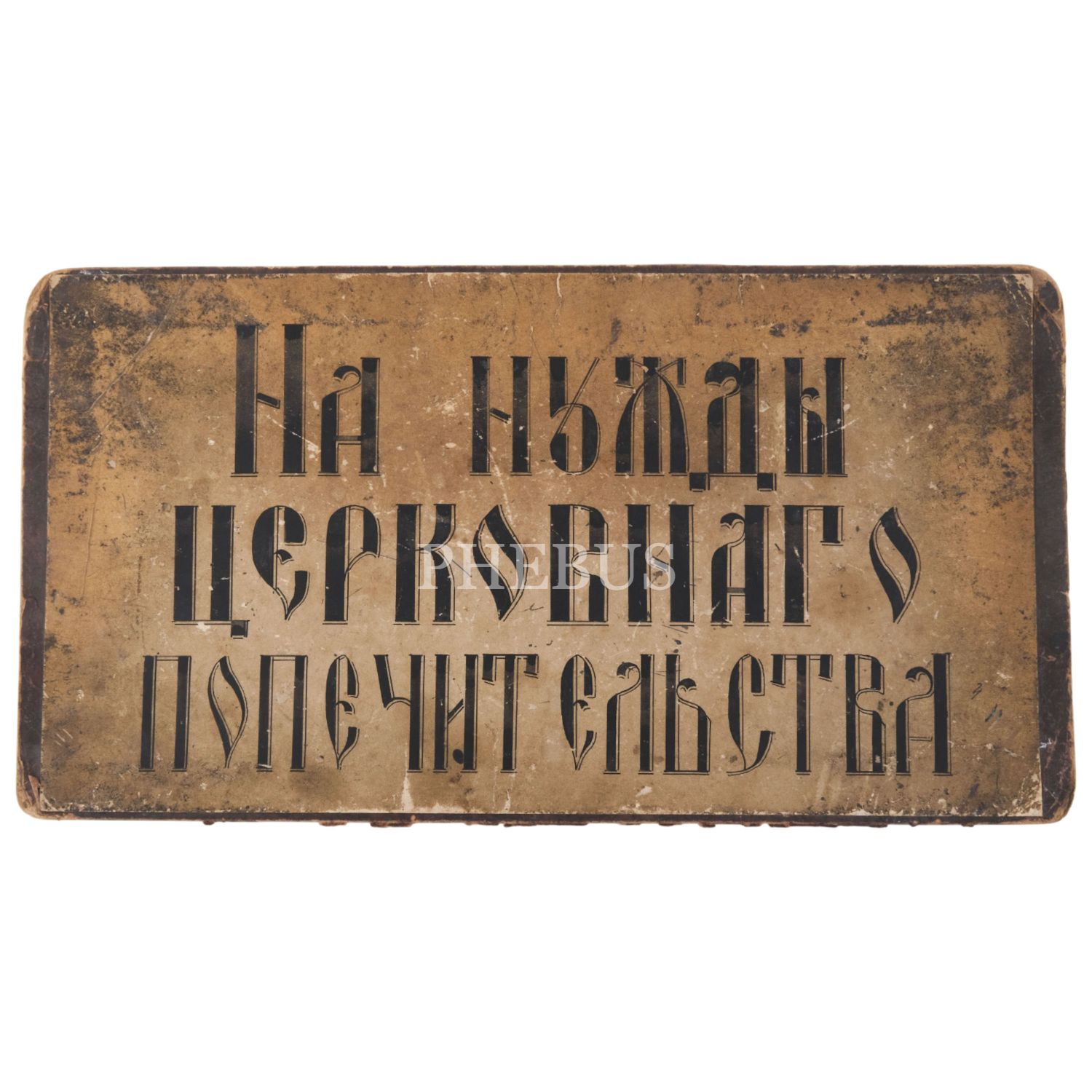 Rusça "Kilise Koruma İhtiyaçları İçin" yazılı bağış kartoneti, 33x18 cm...
