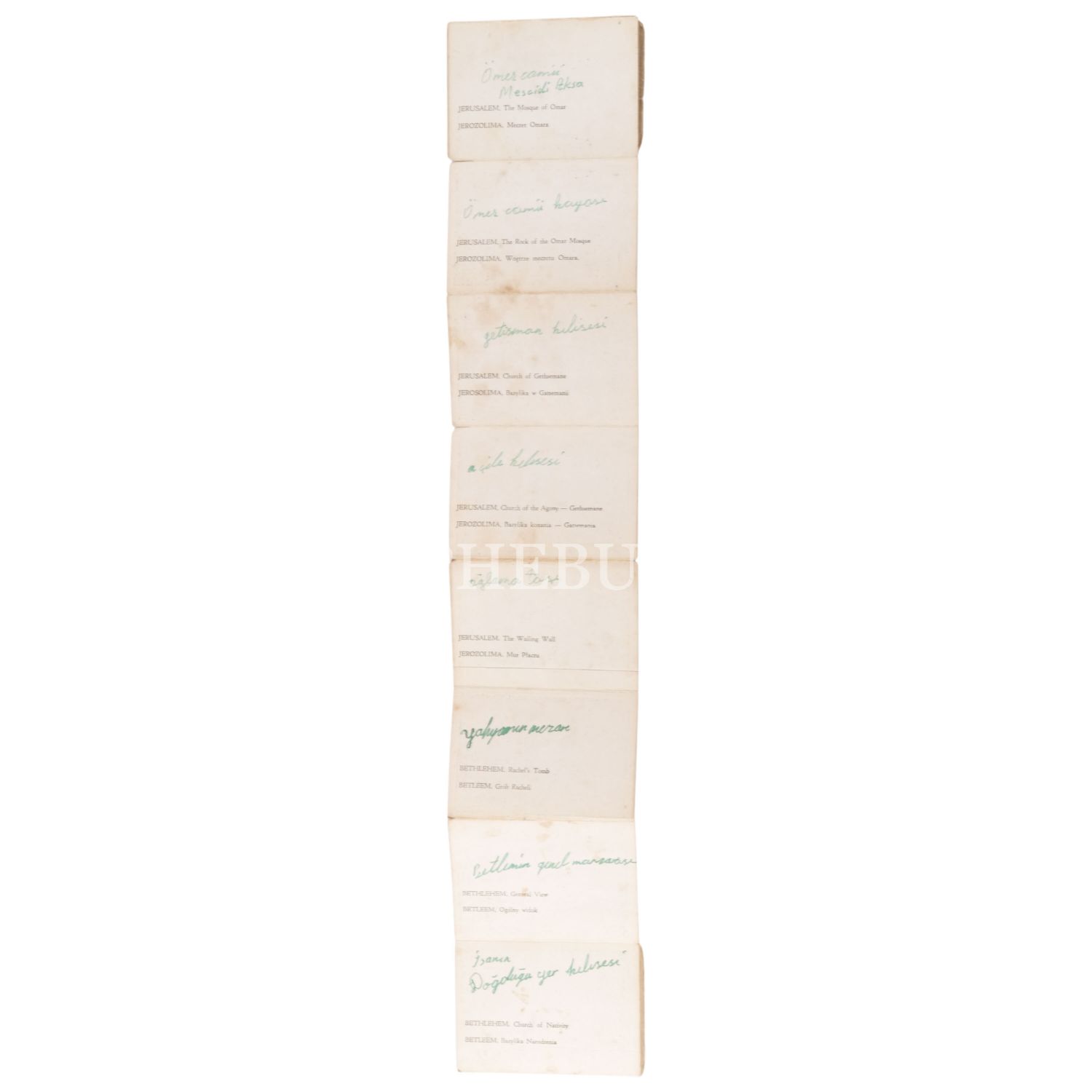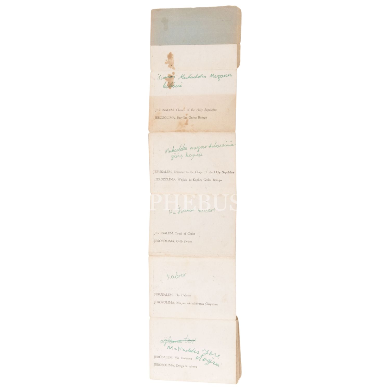 Kutsal Topraklar´dan (Kudüs ve çevresi) sanatsal fotoğraflar (20 adet) içeren akordeon formunda albüm, Lehçe başlıklı, her bir fotoğrafın arkasına Türkçe el yazısıyla konum bilgisi not düşülmüştür, 10x7 cm...