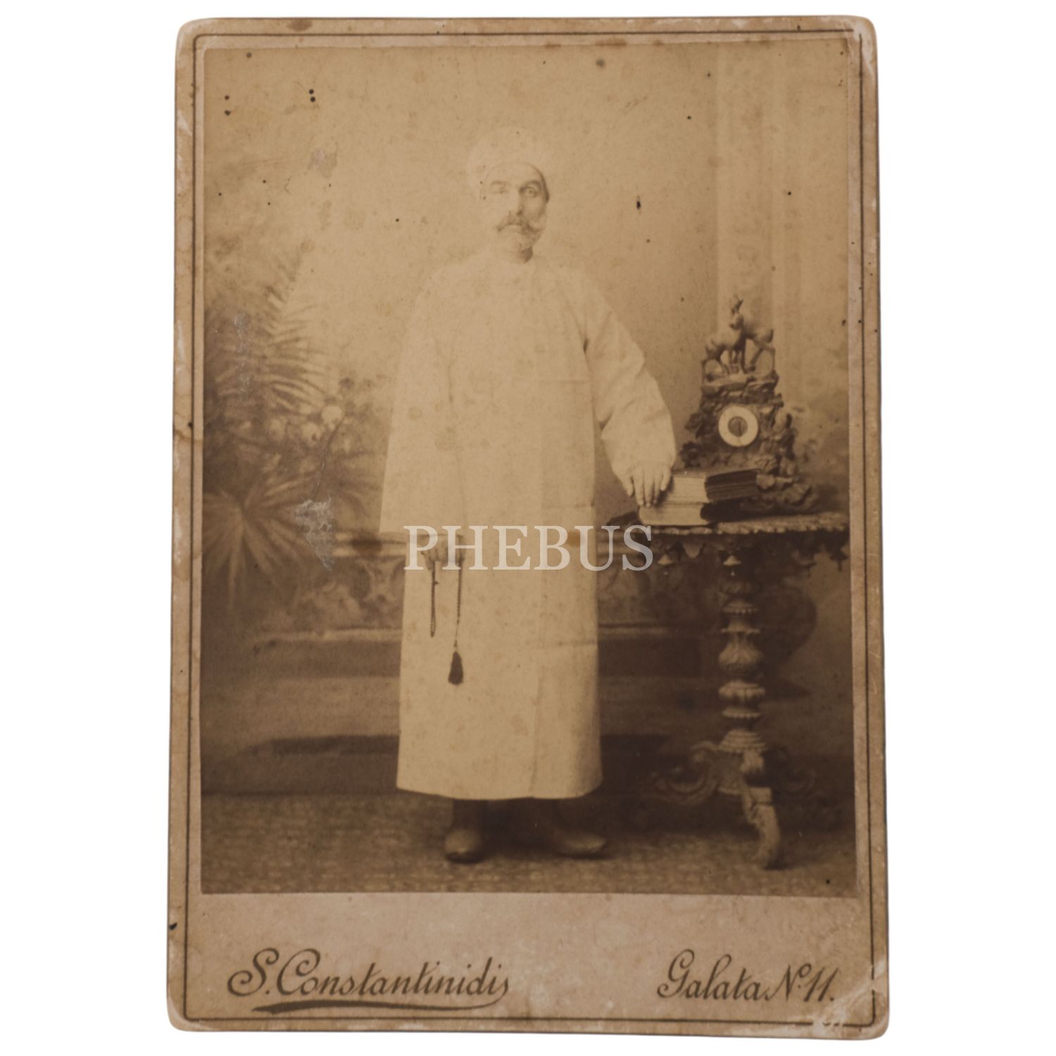 Bir hocaefendinin S. Constantinidis Fotoğrafhanesi´nde (Galata, Constantinople) aldırdığı kabin fotoğrafı, 12x17 cm...