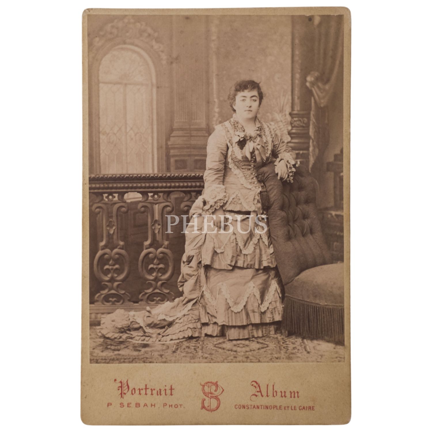 Zarif elbiseli genç bir hanımefendinin, Pascal Sebah Fotoğrafhanesi´nde (Pera, Constantinople) aldırdığı kabin fotoğrafı, 11x16,5 cm...