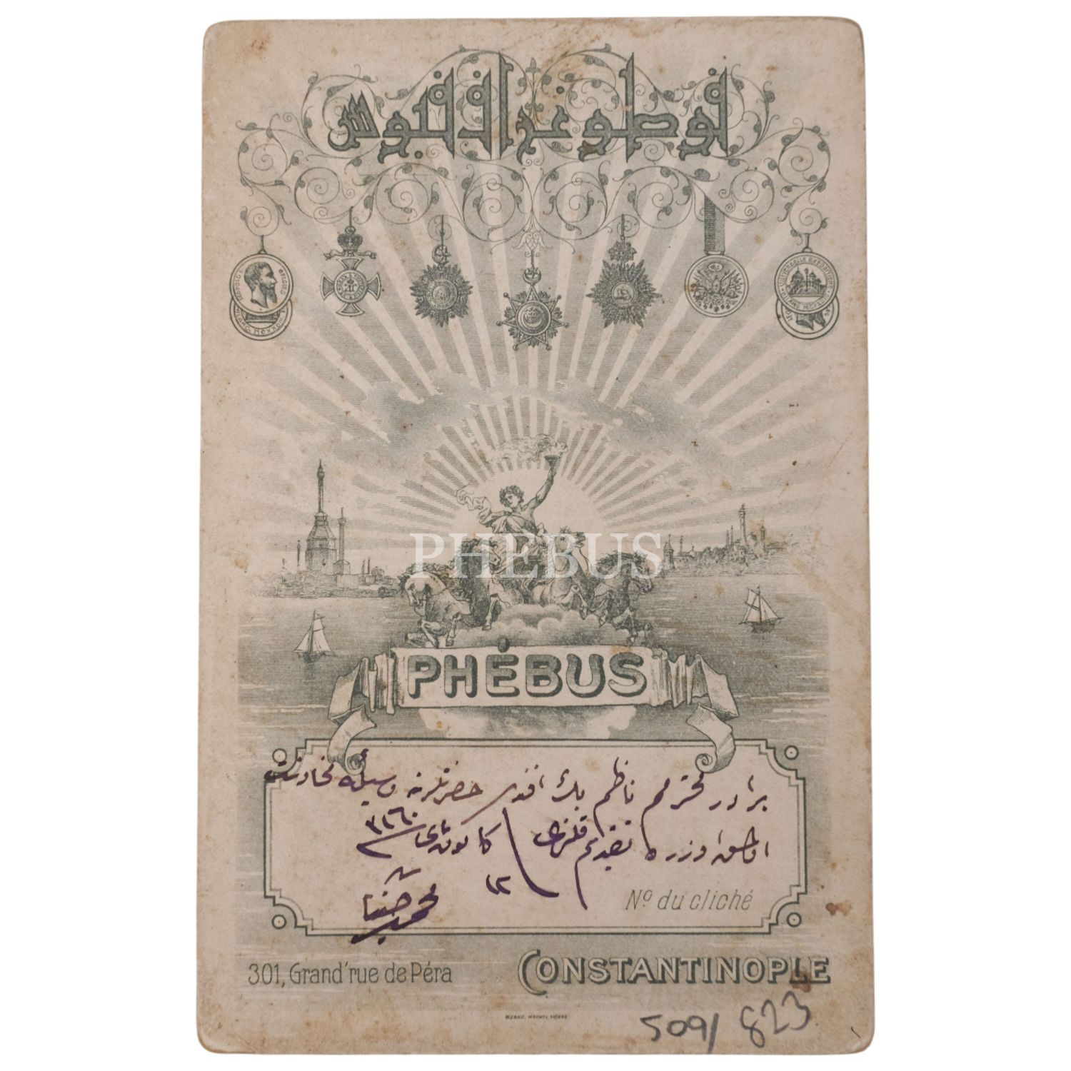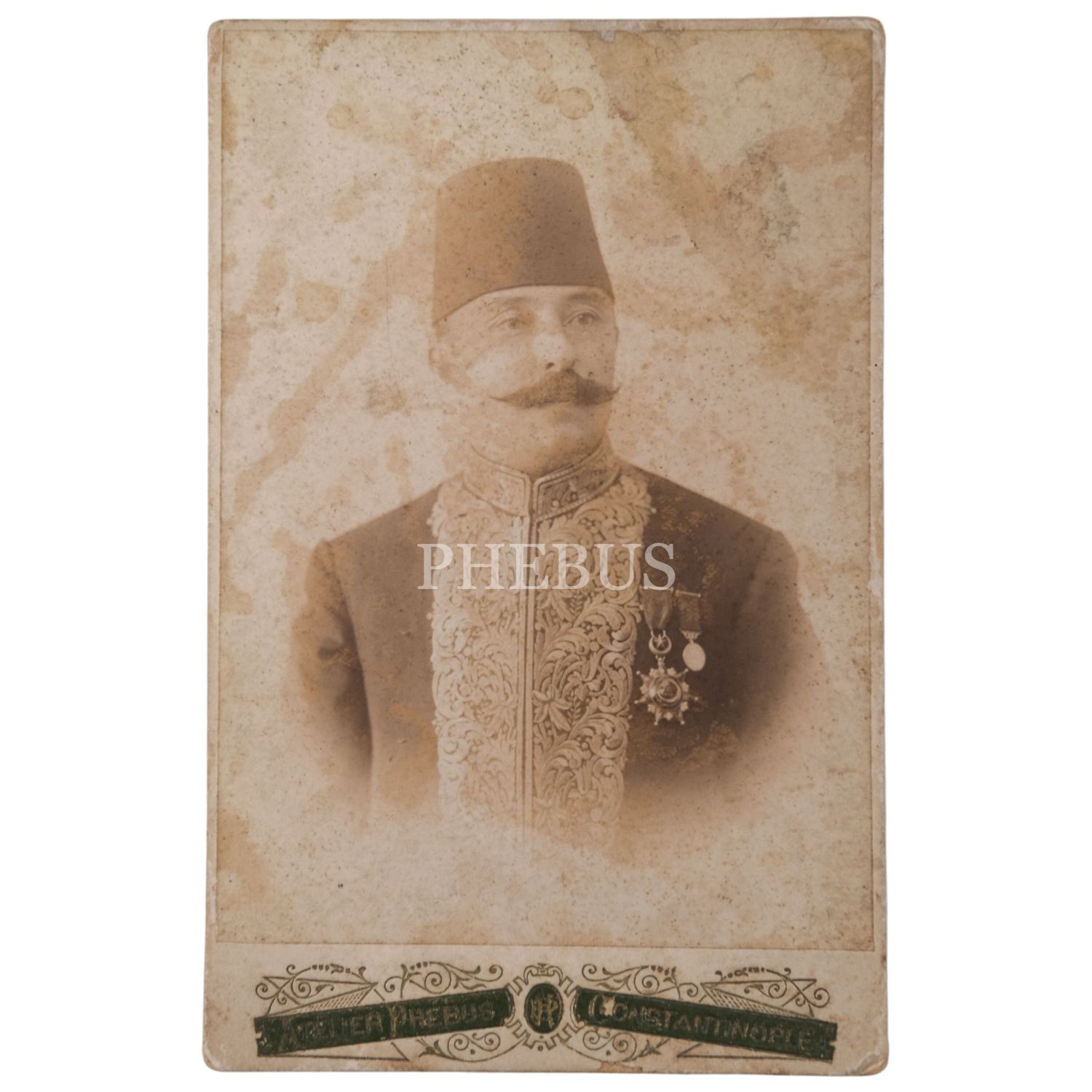 Madalyalı ve üniformalı bir Osmanlı paşasının Phebus Fotoğrafhanesi´nde çektirdiği fotoğrafı, 11x17 cm...