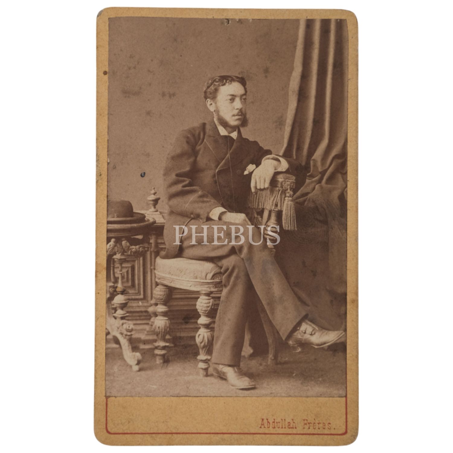 Şık giyimli bir yabancının 1871 yılında, Abdullah Freres Fotoğrafhanesi´nde (Pera, Constantinople) aldırdığı CDV (kartvizit) boy portre fotoğrafı, 6,5x10,5 cm...