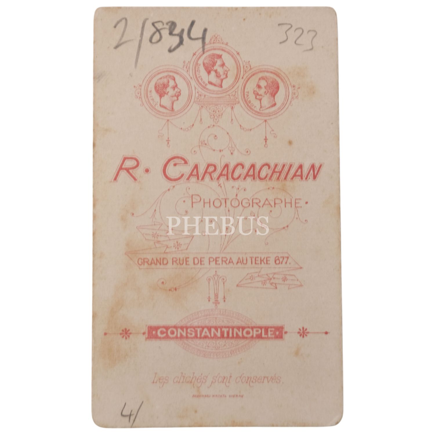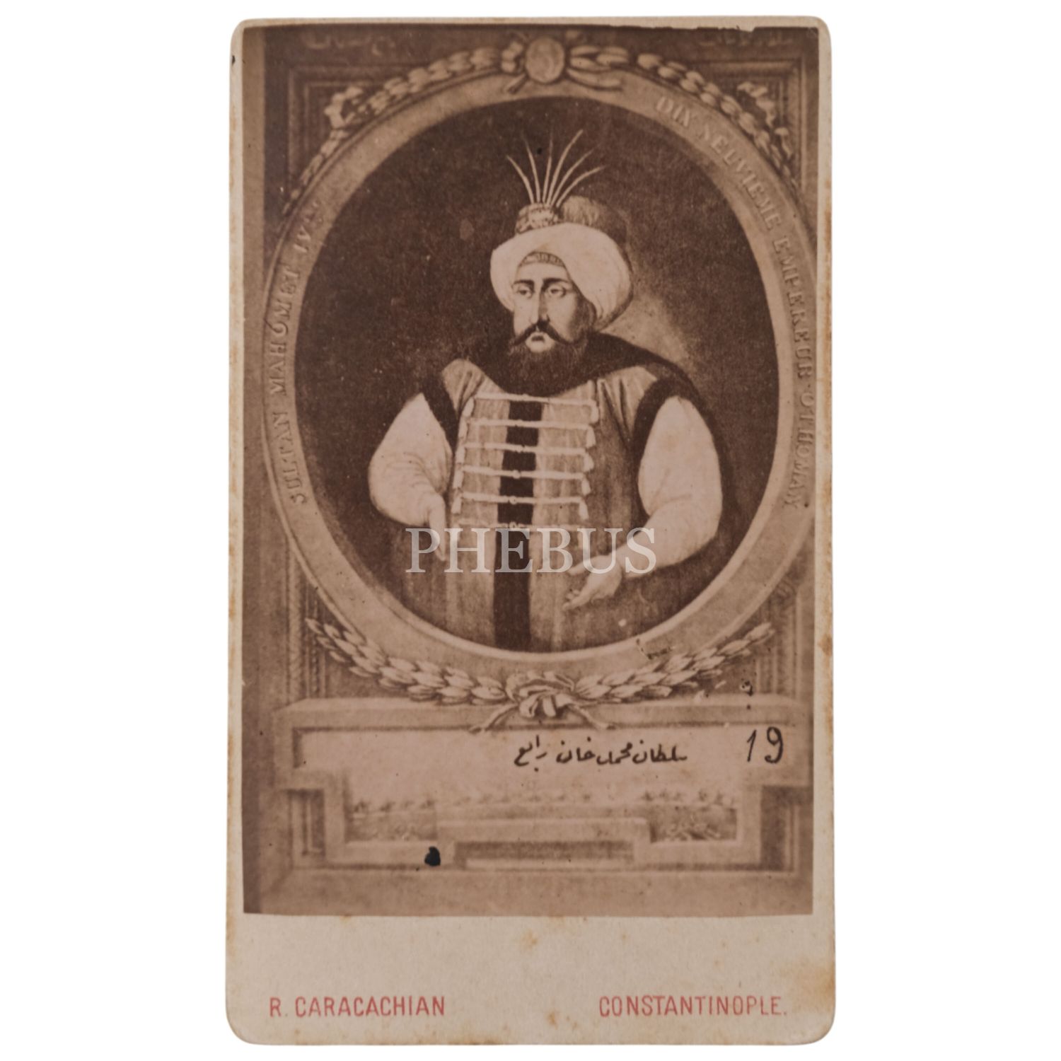 Karakaşyan Fotoğrafhanesi tarafından yayımlanan padişahlar serisinden, CDV (kartvizit) boy Sultan IV. Mehmed portresi, R. Caracachian - Pera, Constantinople, 6,5x11 cm...