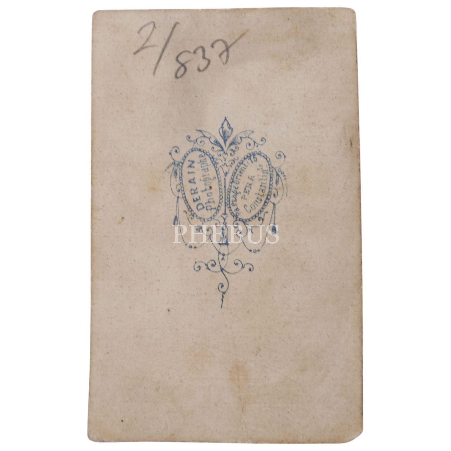 Fesli bir beyefendinin, Derain Fotoğrafhanesi´nde (Pera, Constantinople) aldırdığı CDV (kartvizit) boy fotoğrafı, 6x9,5 cm...