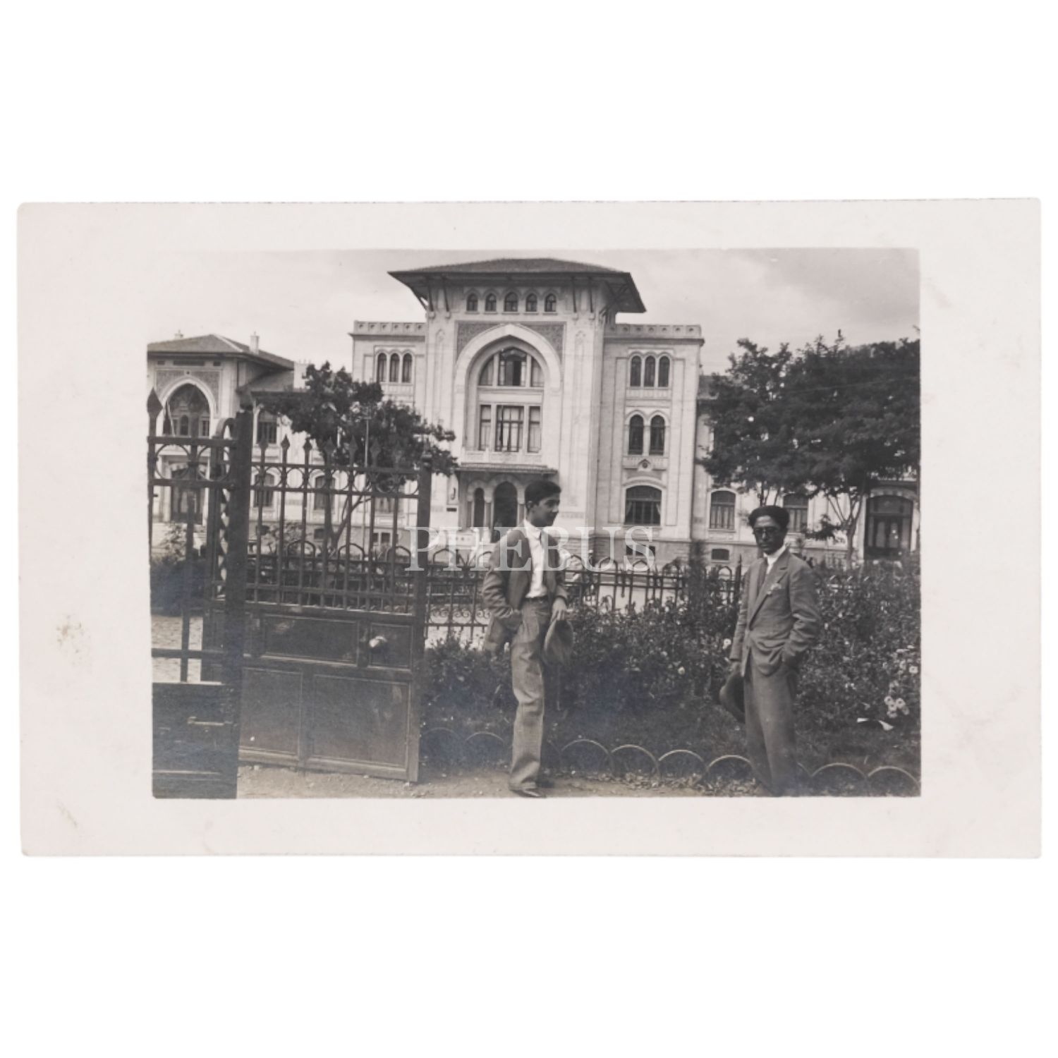 Ankara, Maliye Vekaleti binası önünde iki beyefendi, 14x9 cm...