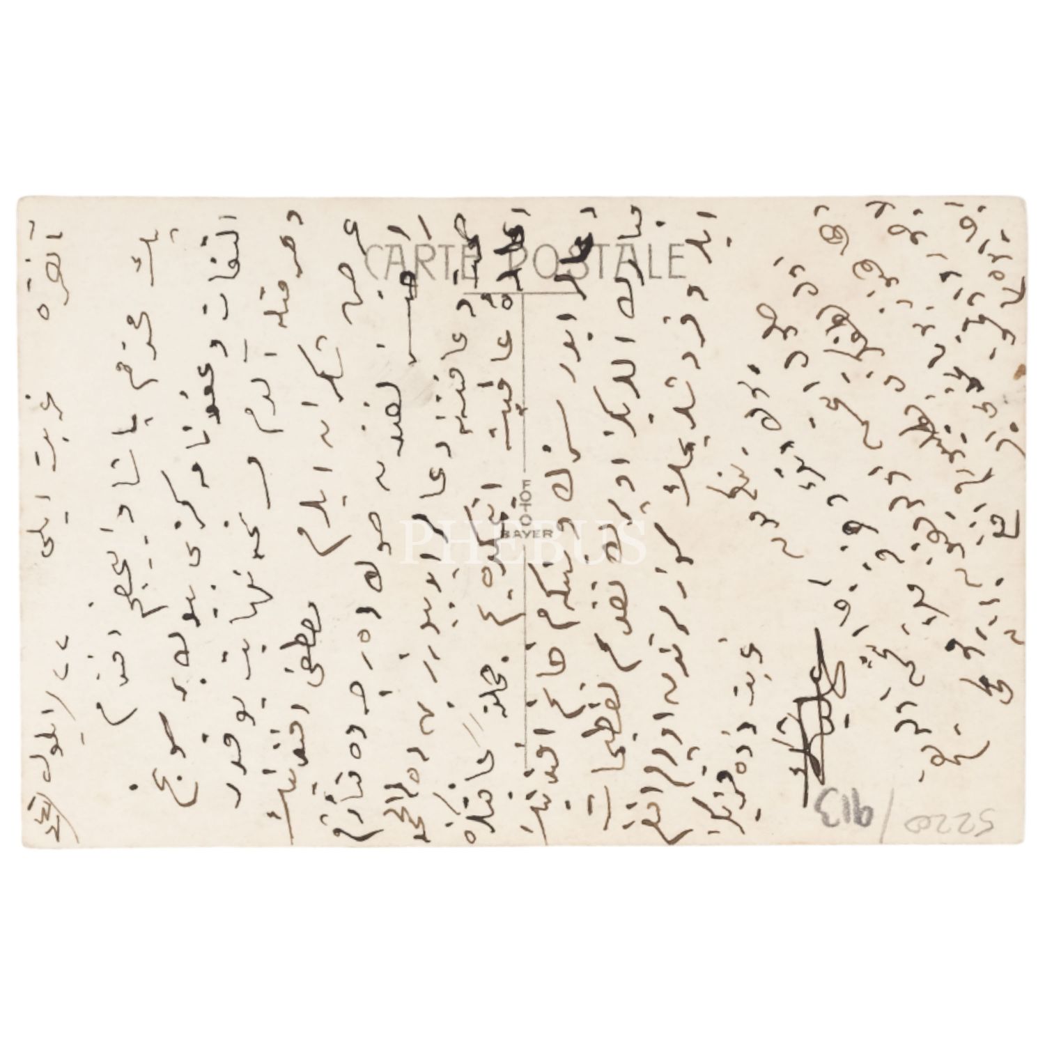 Arka yüzünde "Pek Muhterem Paşa Dayıcığım" hitabıyla kaleme alınıp kızınız Aliye imzasıyla imzalanmış, Osmanlıca mektup yer almaktadır.