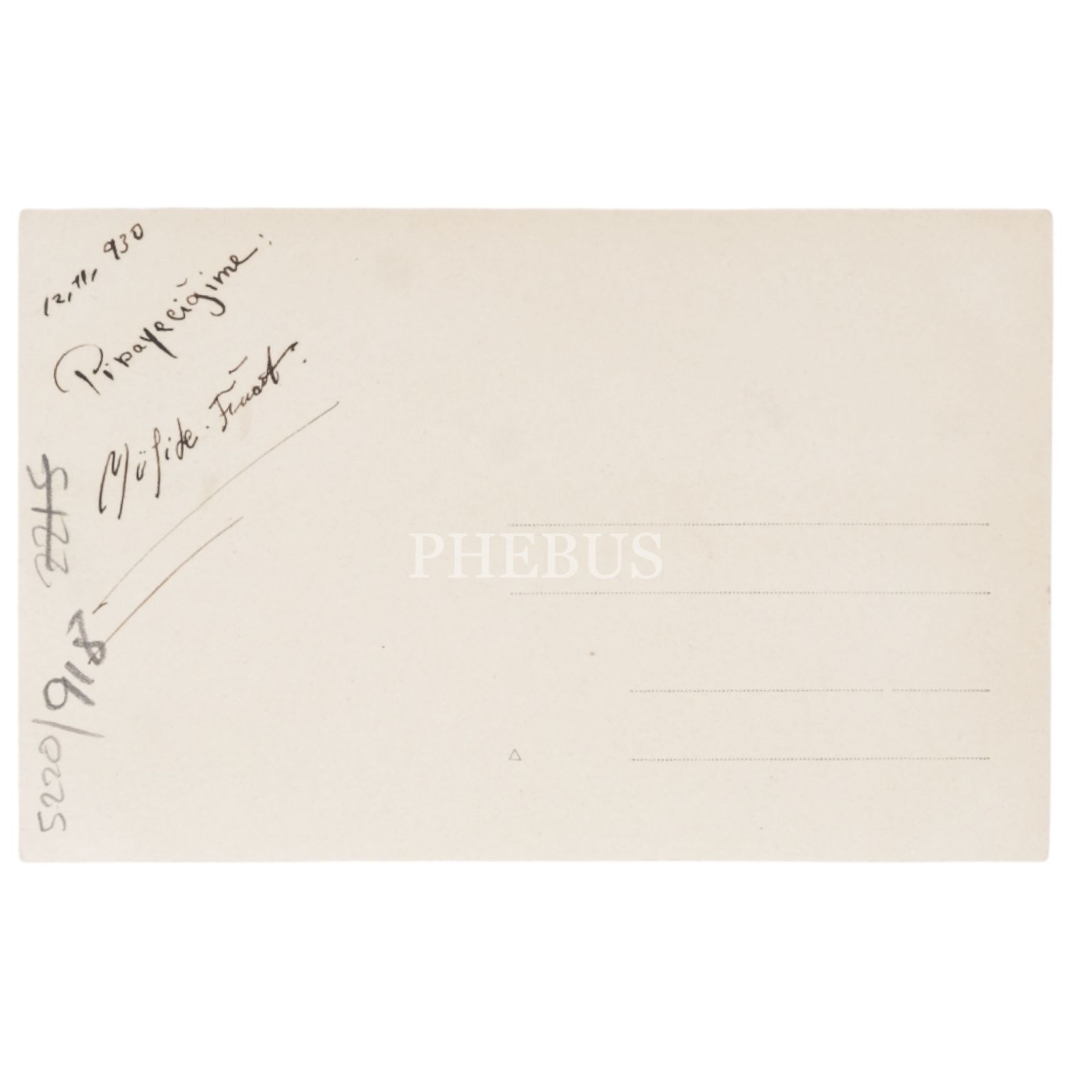 Fotoğrafın arka yüzünde, 12 Kasım 1930 tarihinde kaleme alınmış "Pirayeciğime" ithafı ve Müfide Fuat imzası yer almaktadır.