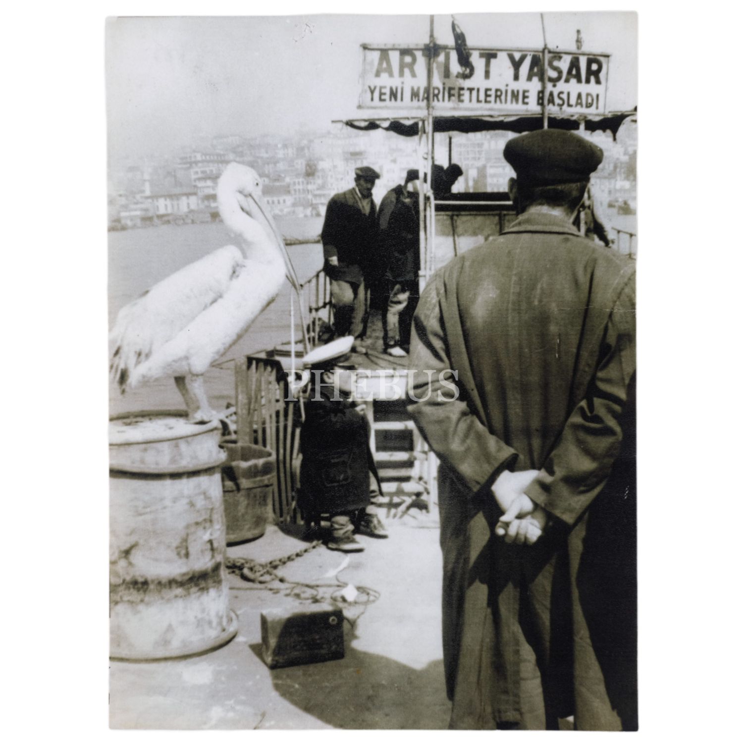 "Artist Yaşar Yeni Marifetlerine Başladı" yazılı tabelanın görüldüğü, İstanbul boğazı kenarında çekilmiş bir fotoğraf, 18x24 cm...