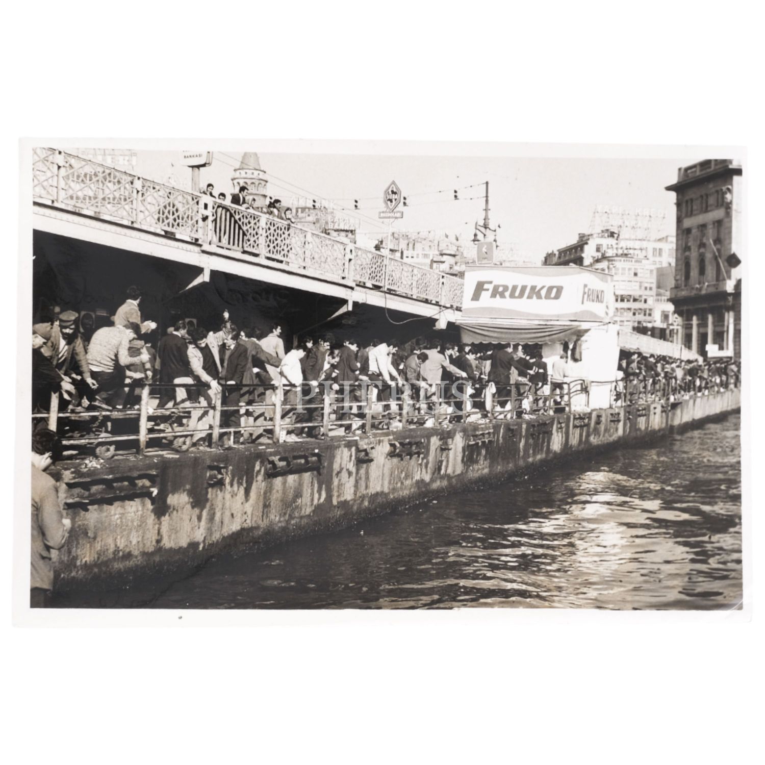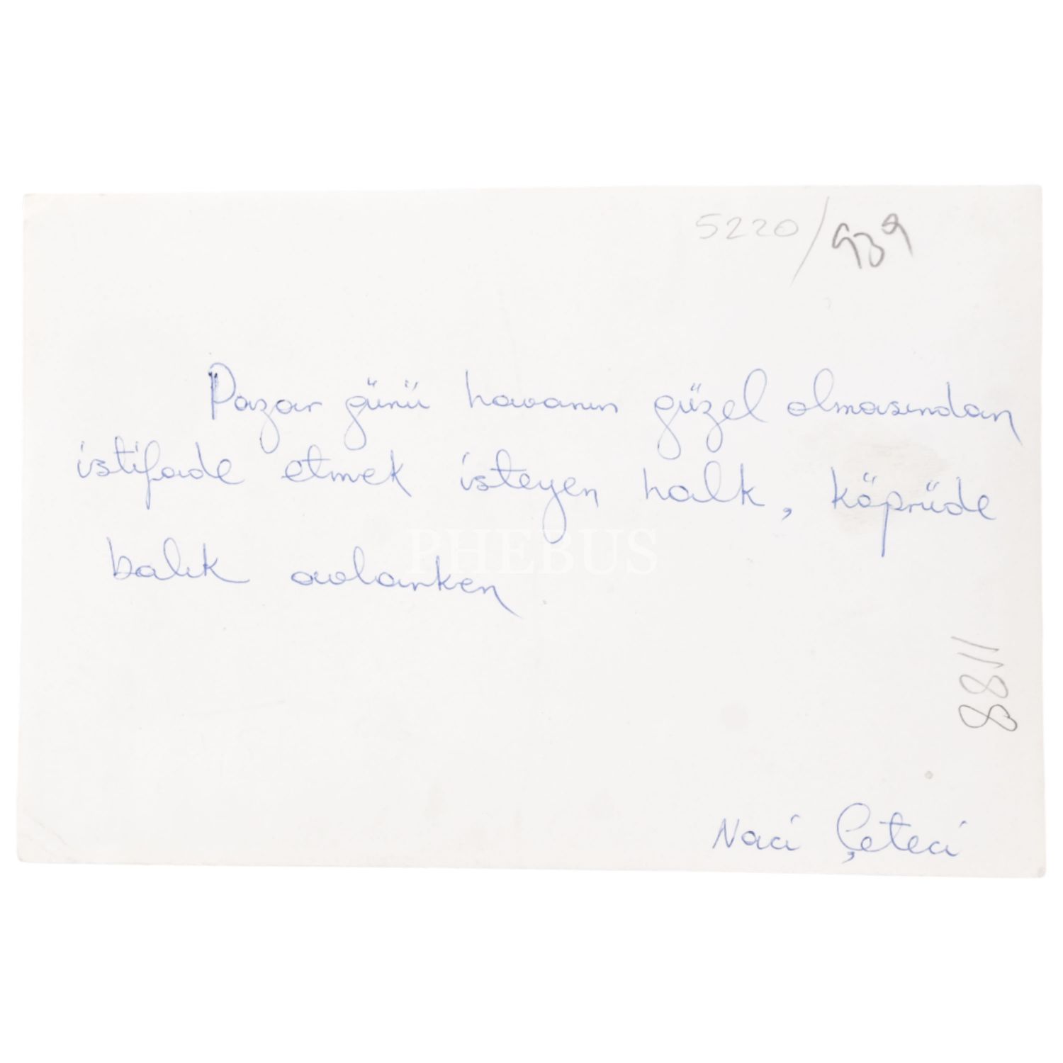 1970´li yıllarda Galata Köprüsü´nde balık tutan ve köprüden geçmeye çalışan halk, 18x12 cm...