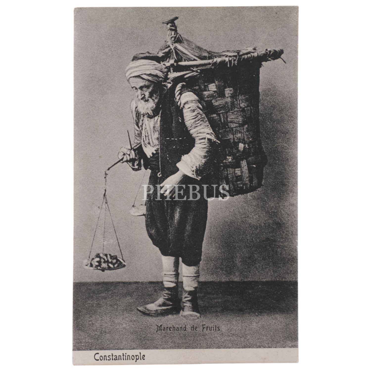 Seyyar meyve satıcısı, "Constantinople - Marchand de Fruits", ed. Bon Marche, Pera, 9x14 cm...