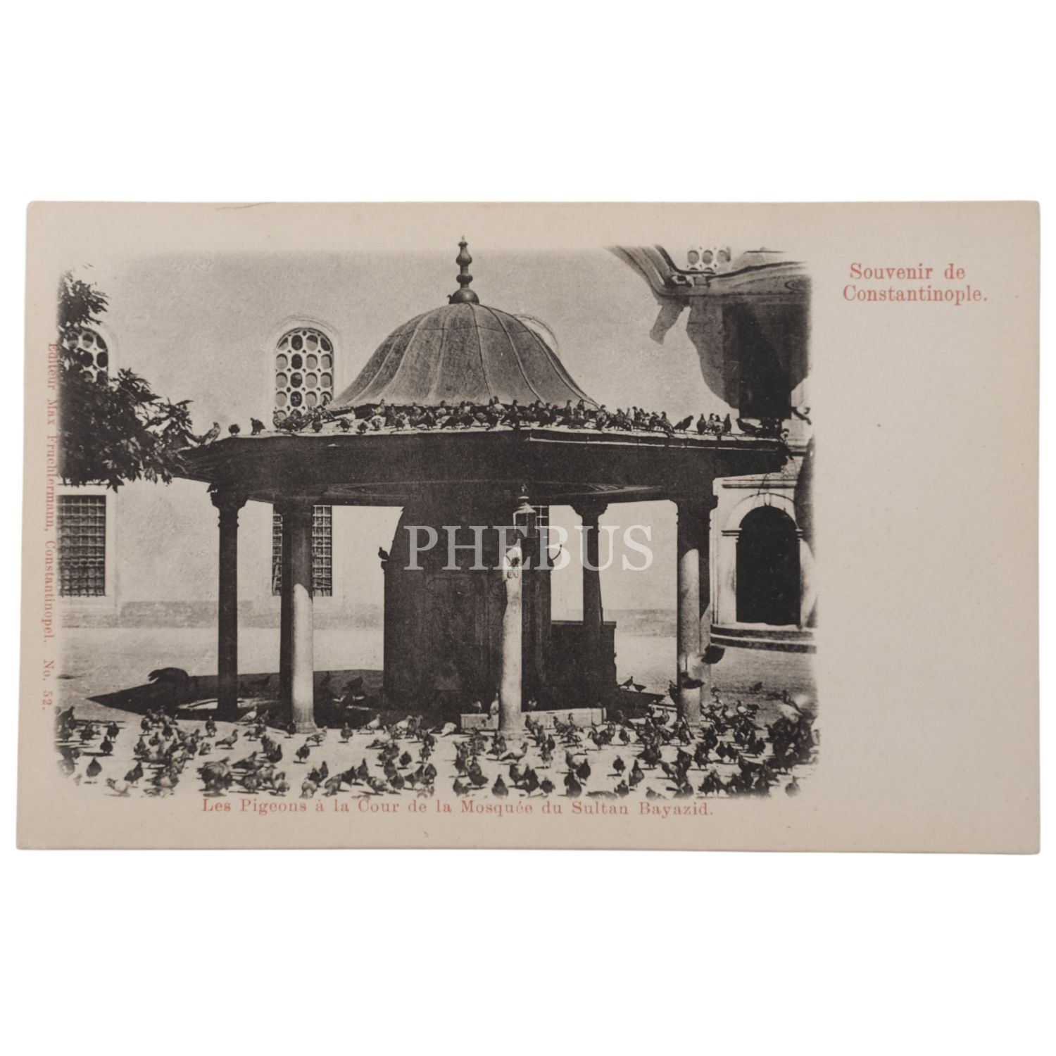 Bayezid Camii avlusunda güvercinler, "Souvenir de Constantinople - Les Pigeons a la Cour de la Mosquee du Sultan Bayazid", ed. Max Fruchtermann, 14x9 cm...