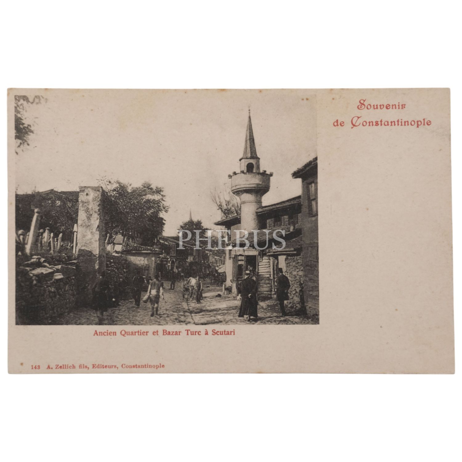 Üsküdar´da eski bir Türk mahallesi ve çarşısı, "Constantinople - Ancien Quartier et Bazar turc a Scutari", ed. A. Zellich Fils, 14x9 cm...