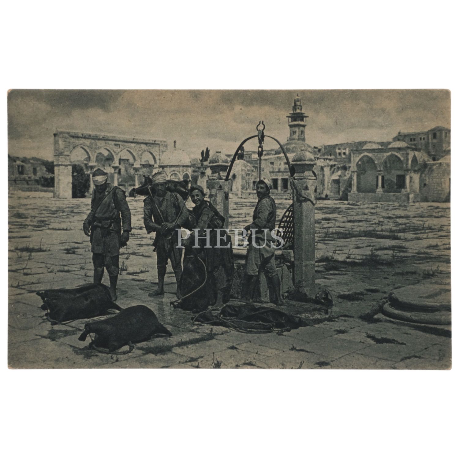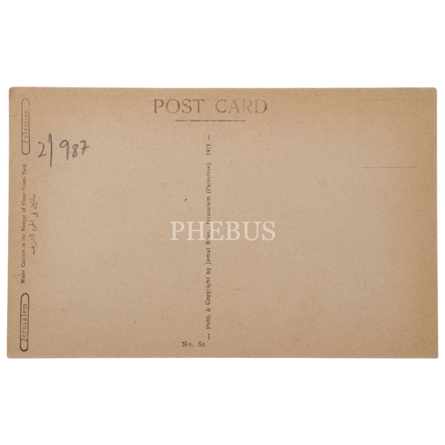 Kudüs, Hz. Ömer Camii avlusunda su taşıyıcılar, "Water Carriers in the Mosque of Omar Courtyard", ed. Jamal Bros, Jerusalem (Palestine), 14x9 cm...