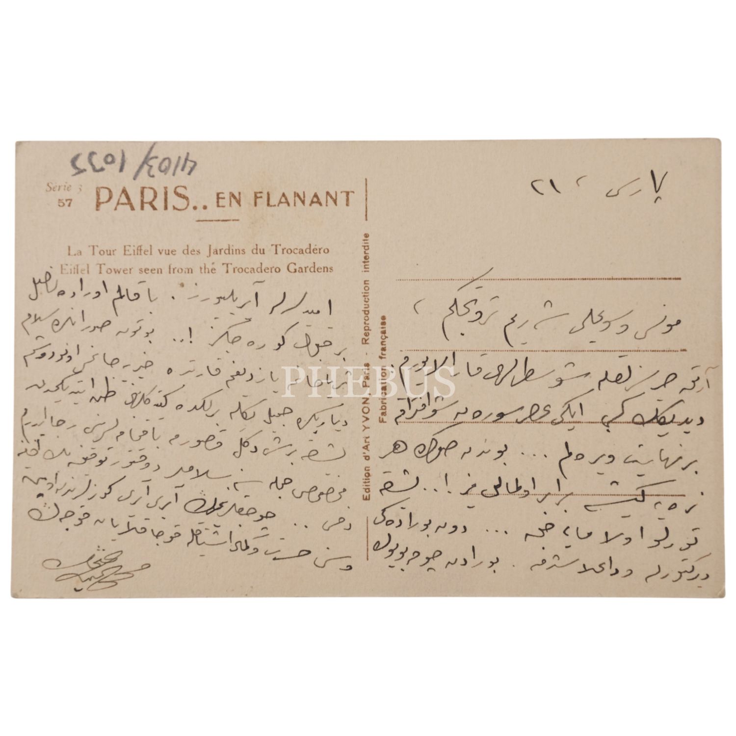 Arka yüzünde Osmanlıca mektup yer almaktadır.