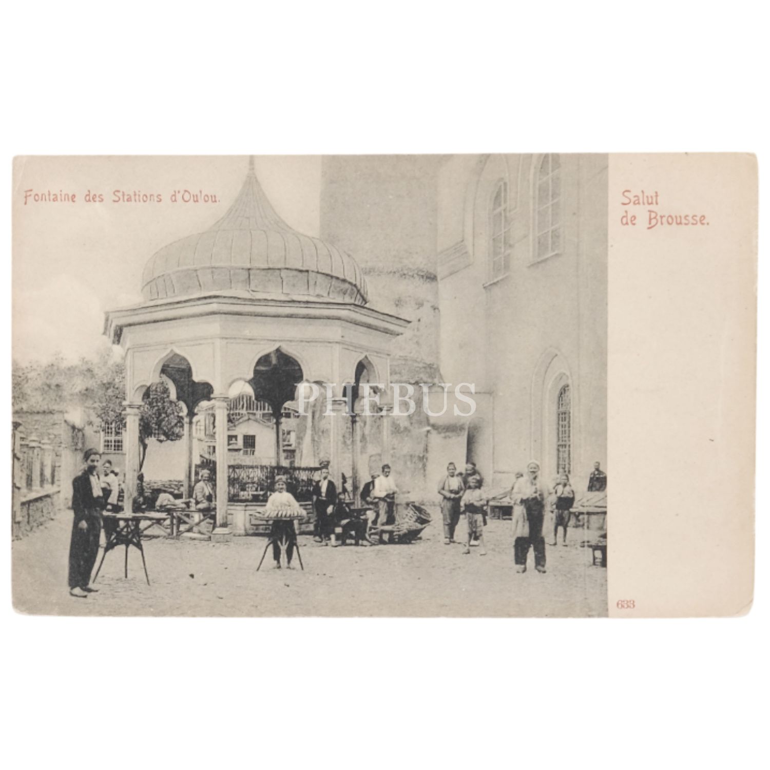 Bursa, Ulu Cami şadırvanı, "Salut de Brousse - Fontaine des Station d´Oulou", 14x9 cm...