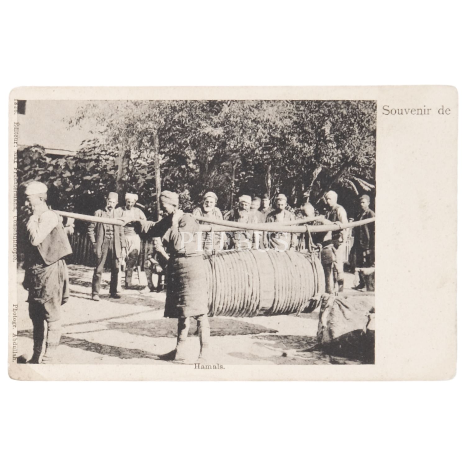 Sırık hamalları, "Souvenir de: Hamals", foto: Abdullah Freres, ed. Max Fruchtermann, Constantinople, 14x9 cm...