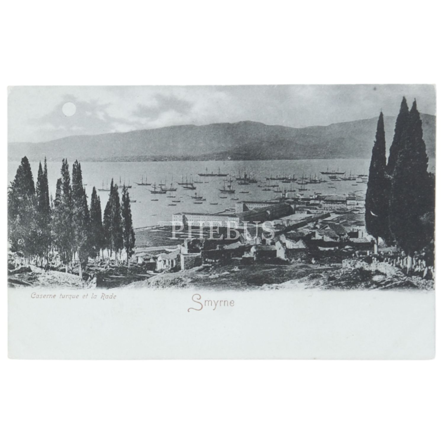 İzmir, Türk kışlaları ve liman, "Smyrne - Caserne turque et la Rade", 14x9 cm...