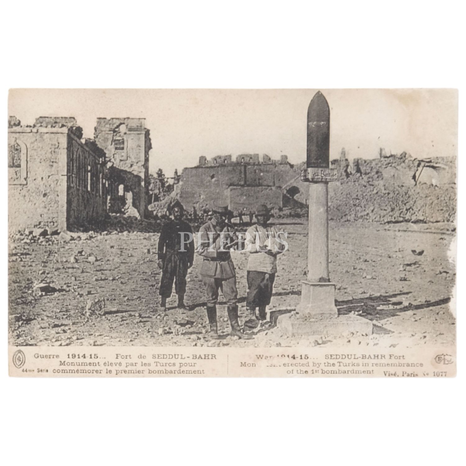 Türkler tarafından inşa edilen Seddülbahir Kalesi Anıtı, "Guerre 1914-15... Fort de Seddul-Bahr Monument eleve par les Turcs pour commemorer le premier bombardement", ed. Le Deley, imp. - edit., 14x9 cm...