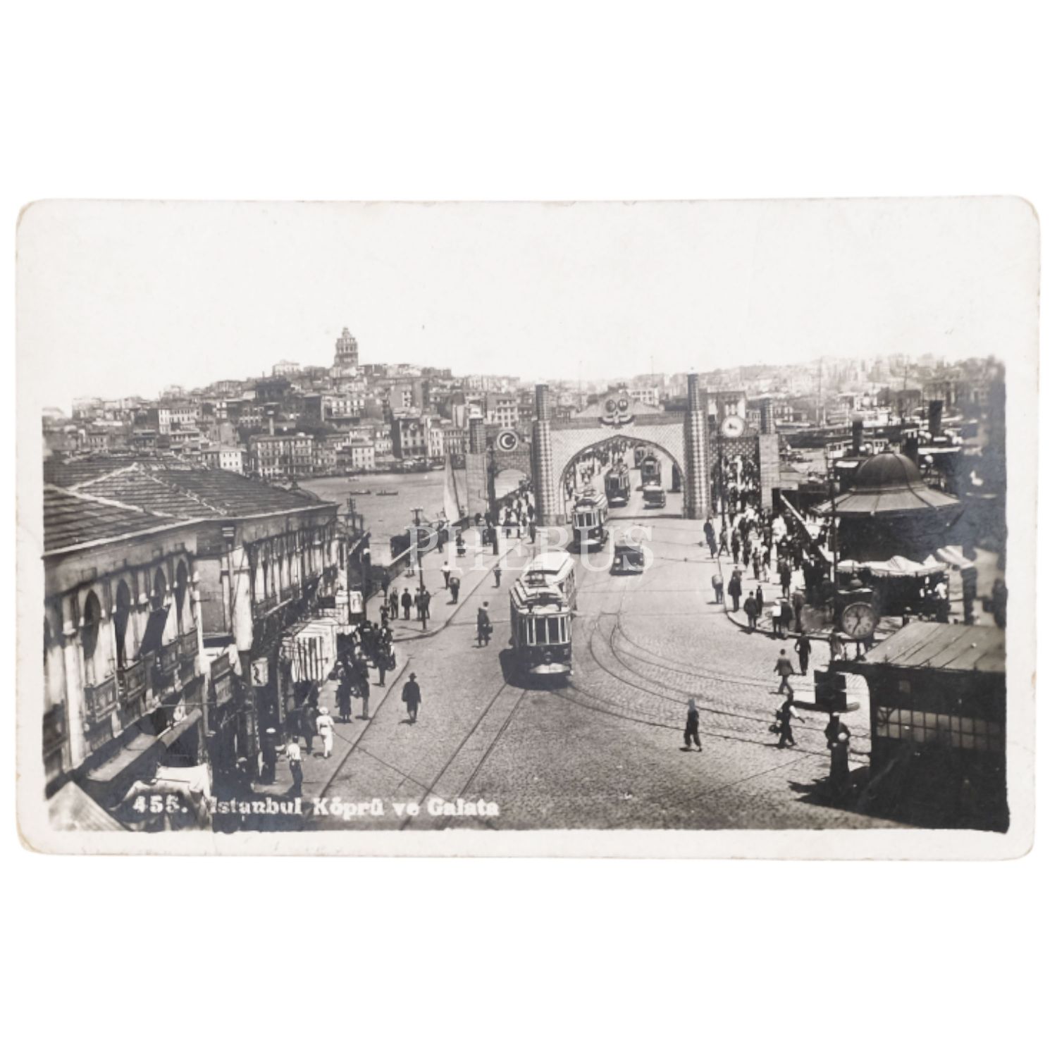 İran Şahı Rıza Pehlevi´nin İstanbul´a gelişi (1934) şerefine Galata Köprüsü´nün iki ucuna kurulan taklardan Eminönü´ne yakın olanı, 14x9 cm...