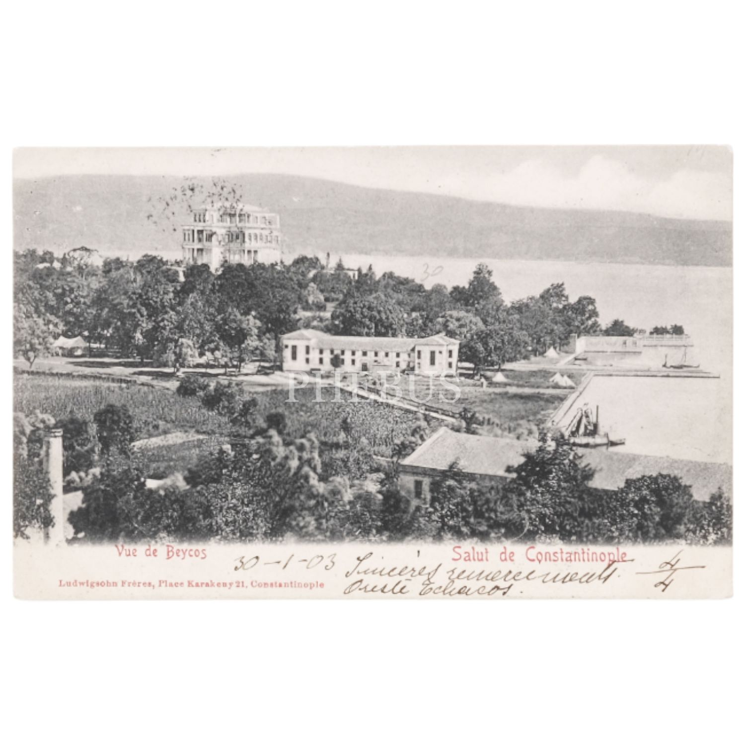 Beykoz, Mecidiye Kasrı ve Boğaziçi, "Vue de Beycos - Salut de Constantinople", 14x9 cm...