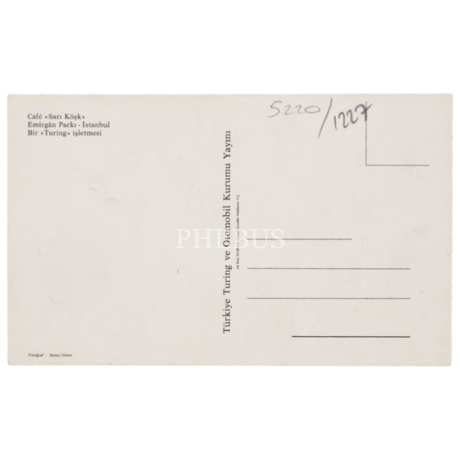 Cafe "Sarı Köşk" - Emirgân Parkı - İstanbul (Bir "Turing" işletmesi), fotoğraf: Şemsi Güner, Türkiye Turing ve Otomobil Kurumu Yayını, 15x9 cm...