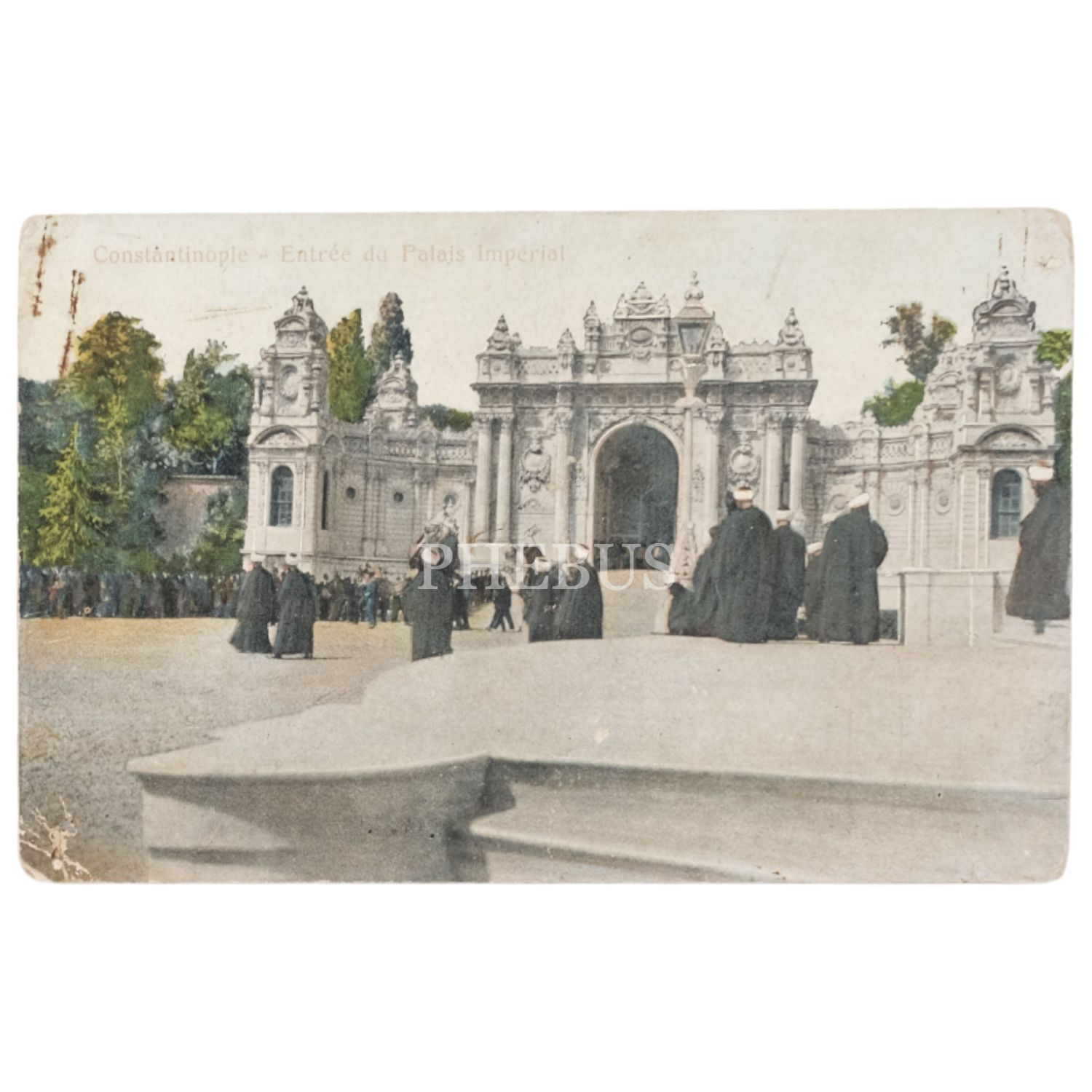 İstanbul, Dolmabahçe Sarayı girişinde hocalar, "Constantinople - Entree du Palais Imperial", arka yüzü Osmanlıca notlu, 14x9 cm...