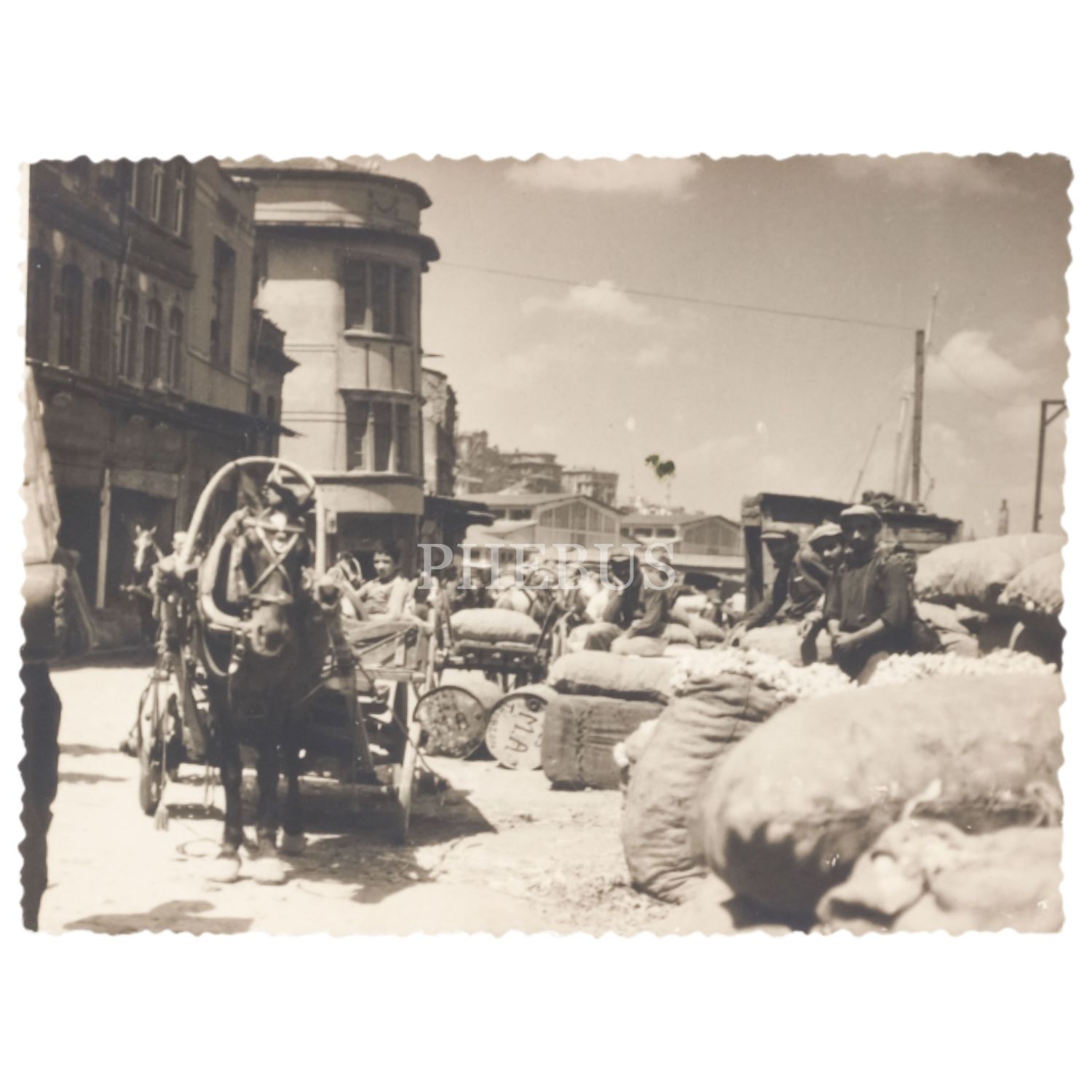 İstanbul, bir rıhtıma yük indiren işçiler, 1955, 12x9 cm...