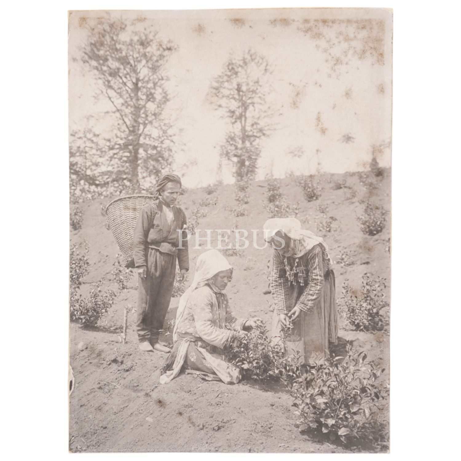Fidan başında toplama yapan köylüler, 12,5x17 cm...