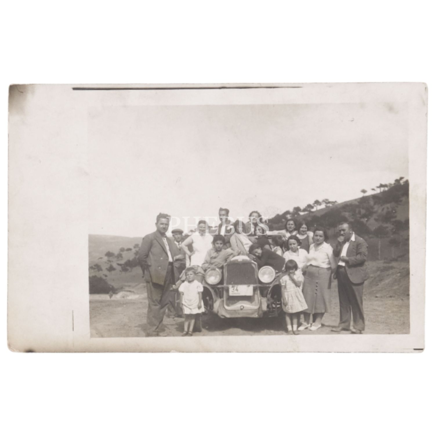 Ankara'nın 34 numaralı otomobiliyle poz veren bir aile, 14x9 cm...