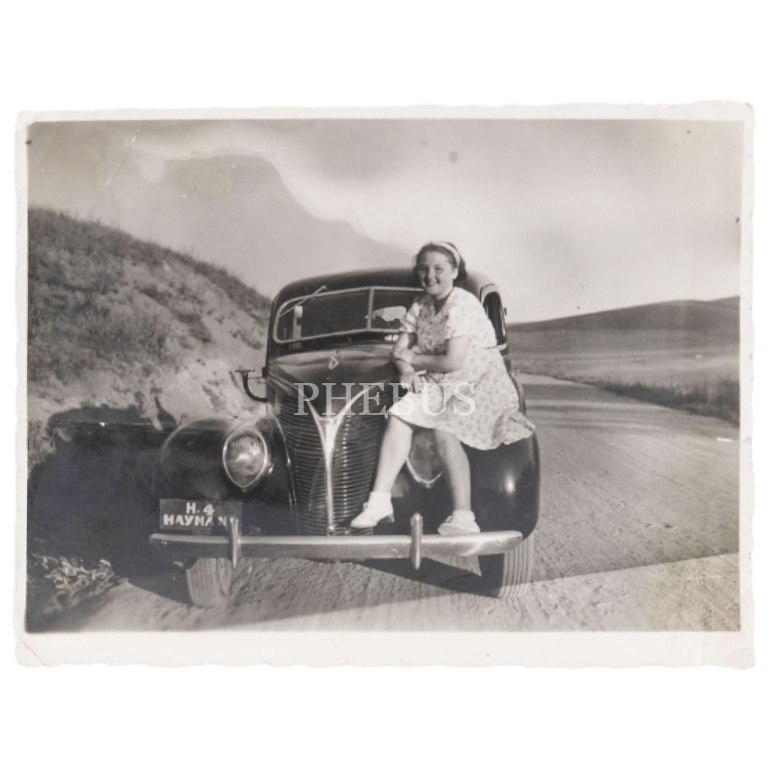 Haymana plakalı otomobille poz veren genç kız, 11,5x9 cm...