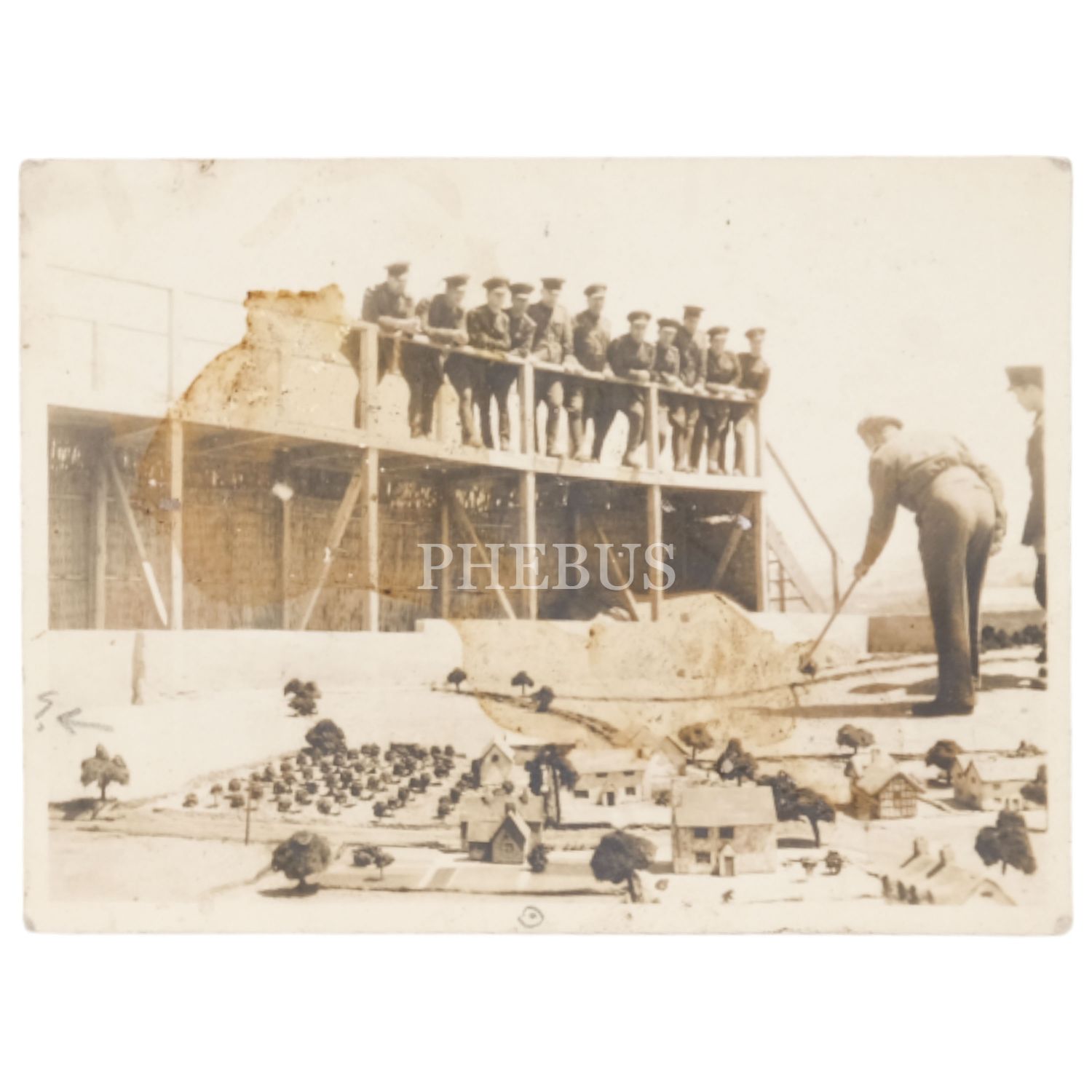 Ankara´da bir şehir maketi üzerinde incelemelerde bulunan bir grup asker, fotoğrafın arka yüzüne kroki çizilmiştir, 12x9 cm...
