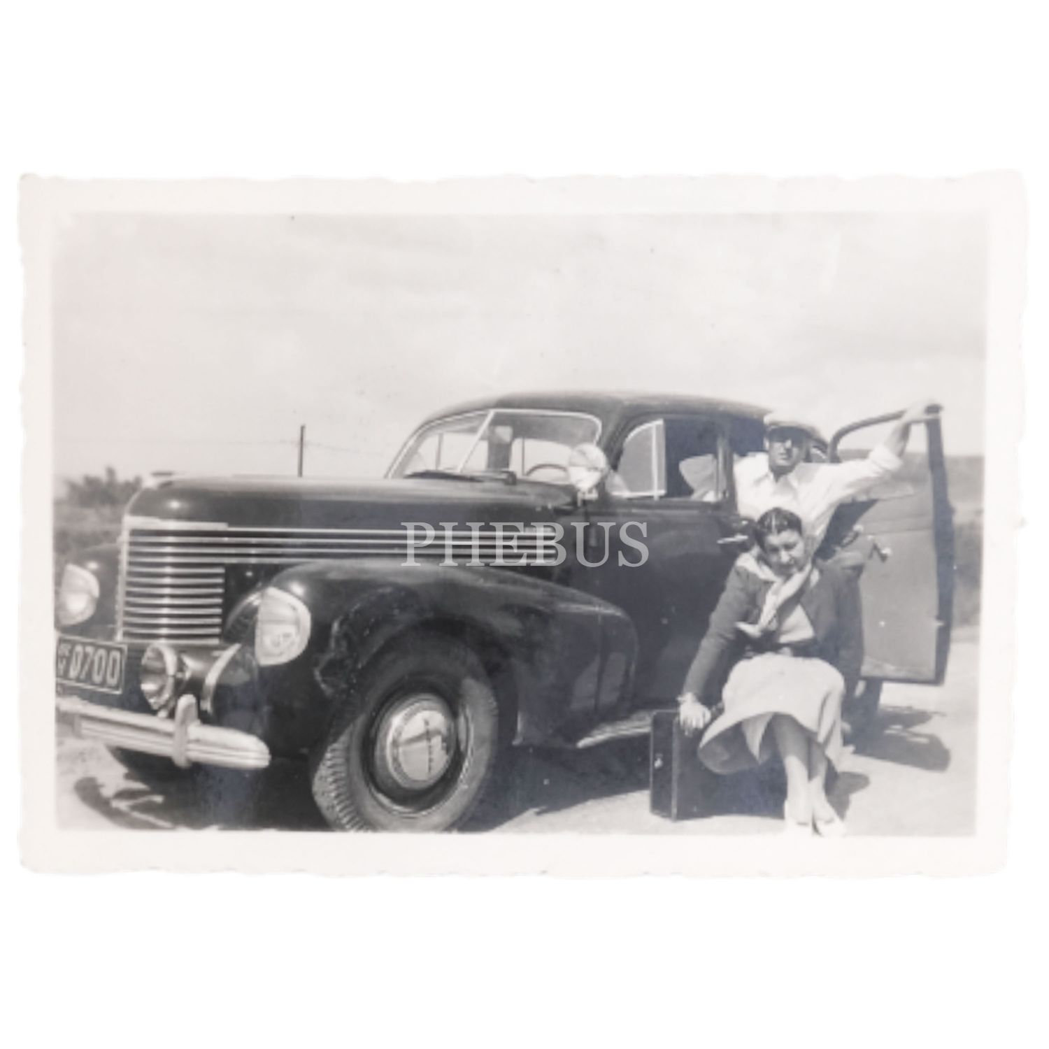 Otomobilleriyle hatıra fotoğrafı çektiren bir çift, 9x6,5 cm...