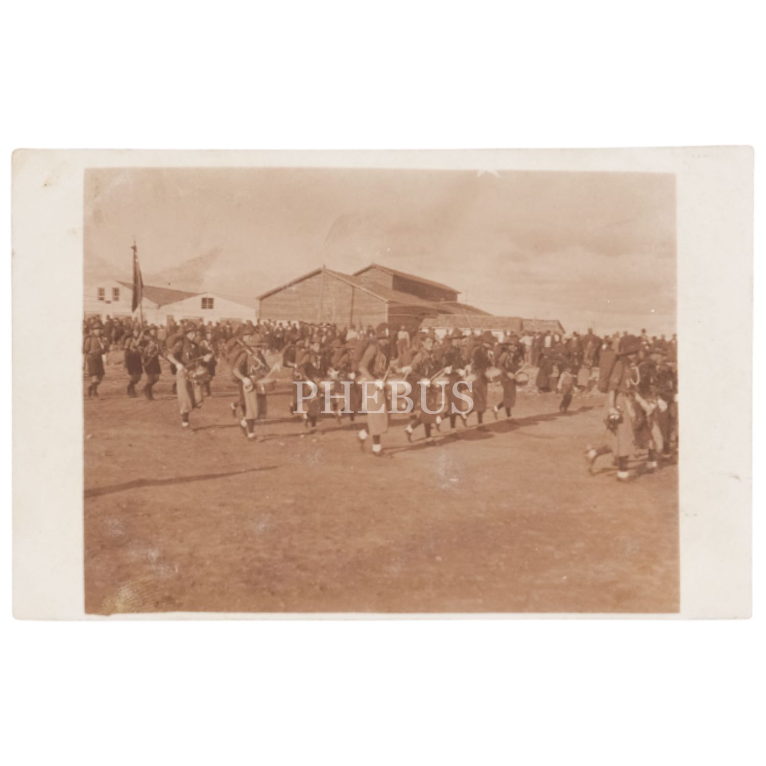 Tören yürüyüşü yapan bir grup izci, 14x9 cm...