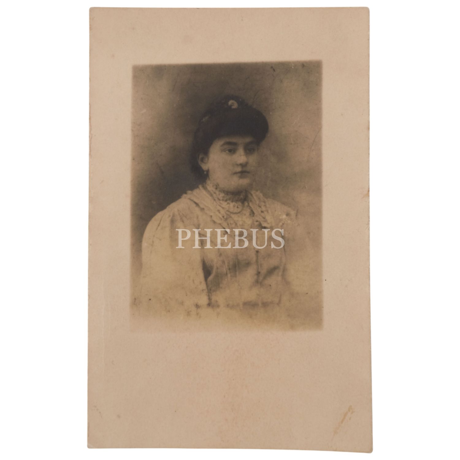 Bir hanımefendinin stüdyo hatıra fotoğrafı, 14x9 cm...